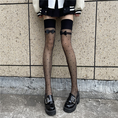 波点蝴蝶结黑丝袜夏季超薄过膝长筒袜子日系JK白丝性感黑色大腿袜