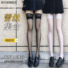 蕾丝边丝袜 黑丝袜性感女薄款过膝白丝渔网黑色中筒长筒辣妹袜子