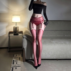 辣妹日记CL「丁香」葡萄紫色极光吊带一体油亮性感丝袜蕾丝长筒袜