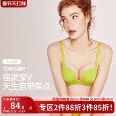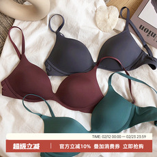 爱黛小胸聚拢光面无痕红色内衣女无钢圈上托侧收副乳防下垂文胸罩