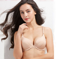 光面无痕内衣女士半杯小胸聚拢上薄下厚上托有钢圈文胸罩性感百搭