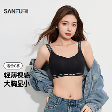 三福薄C杯无钢圈文胸 休闲光面英文肩带大胸显小内衣女503321