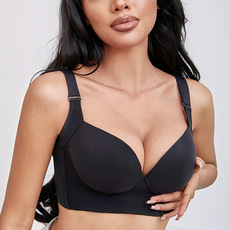 跨境聚拢收副乳无缝杯背心式塑身美背文胸无钢圈无胸垫调整型