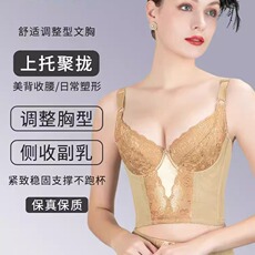 美容院调整型文胸聚拢收副乳侧收矫正防下垂外扩无钢圈五排扣内衣