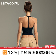 Mitaogirl挂脖美背运动内衣女裸感莱卡瑜伽文胸透气弹力健身背心