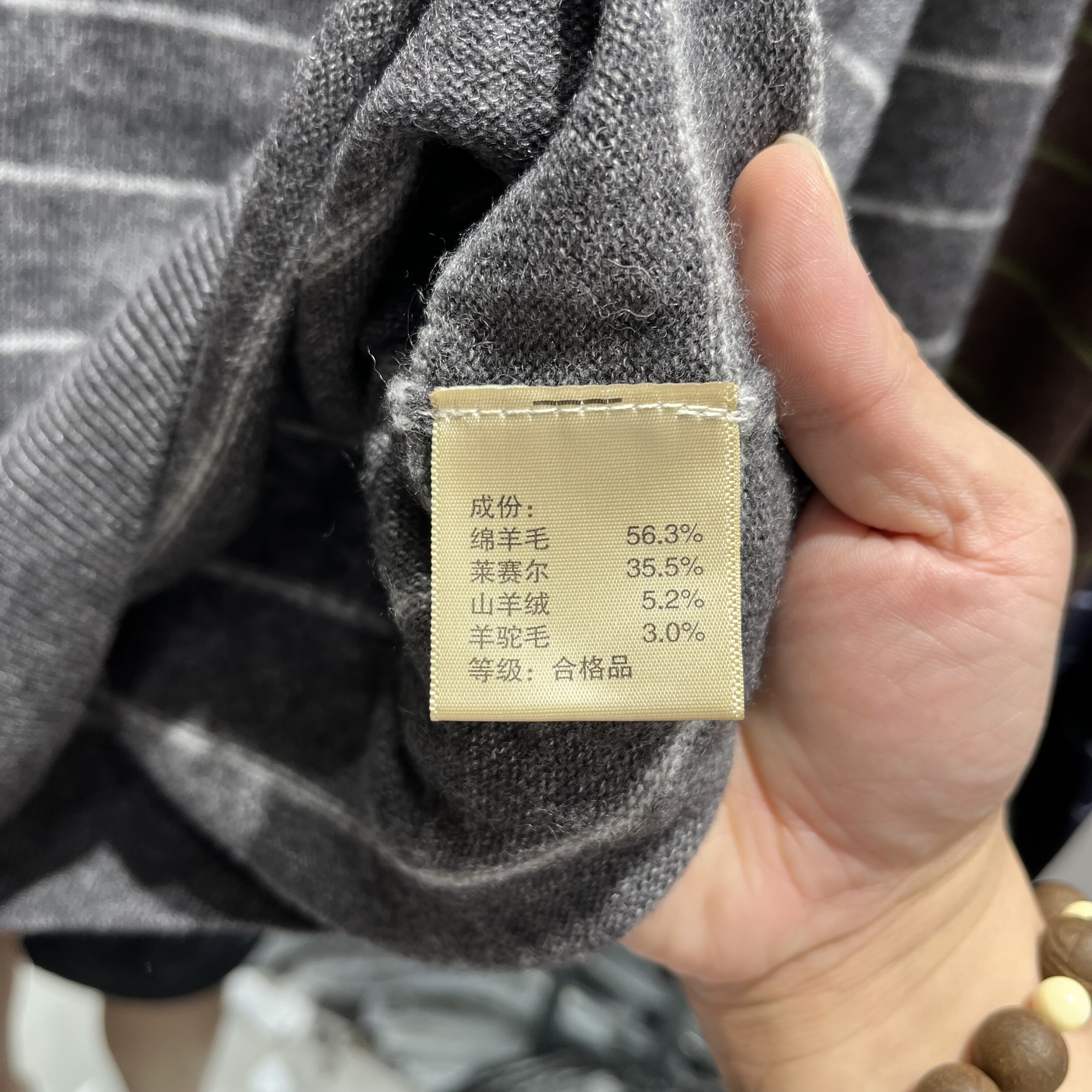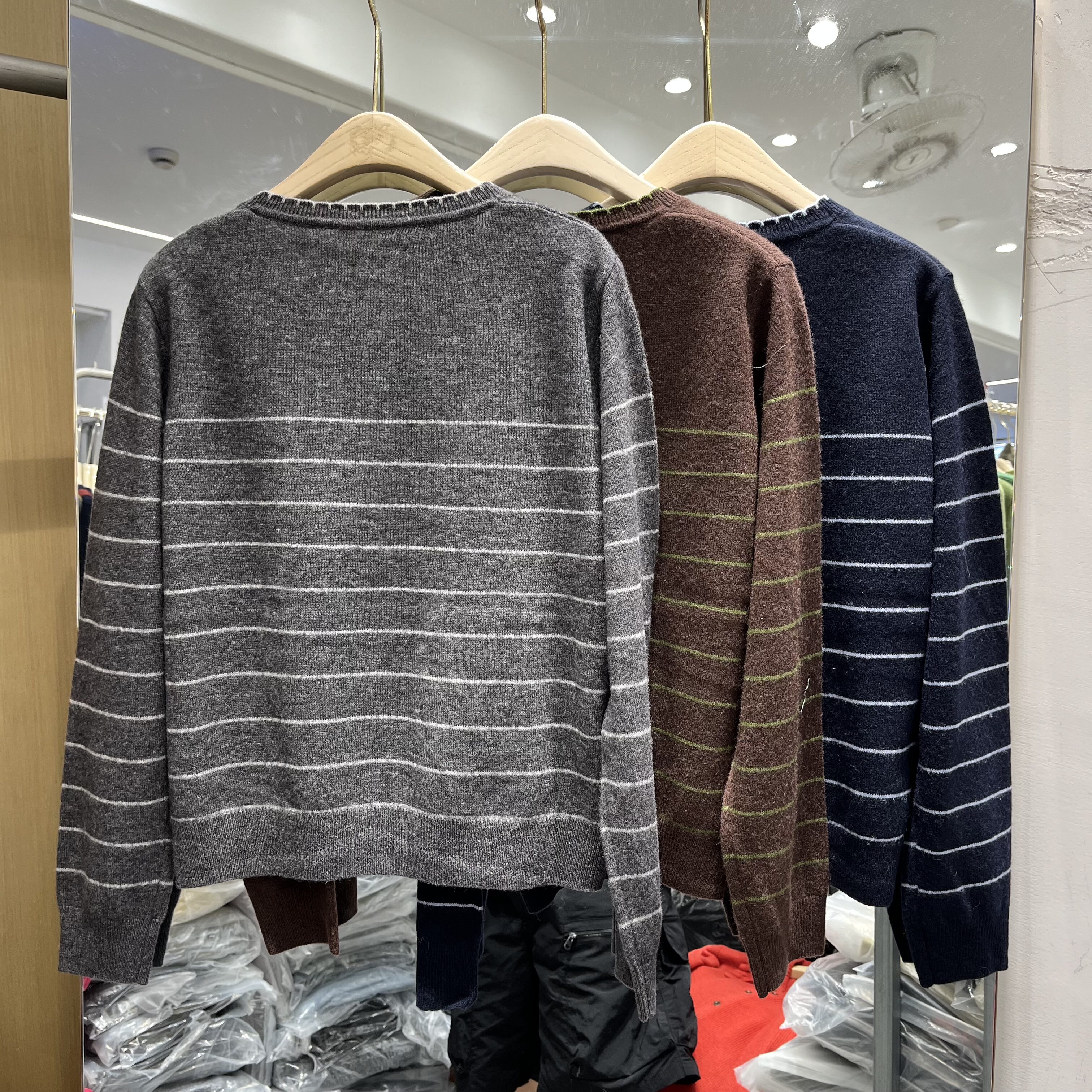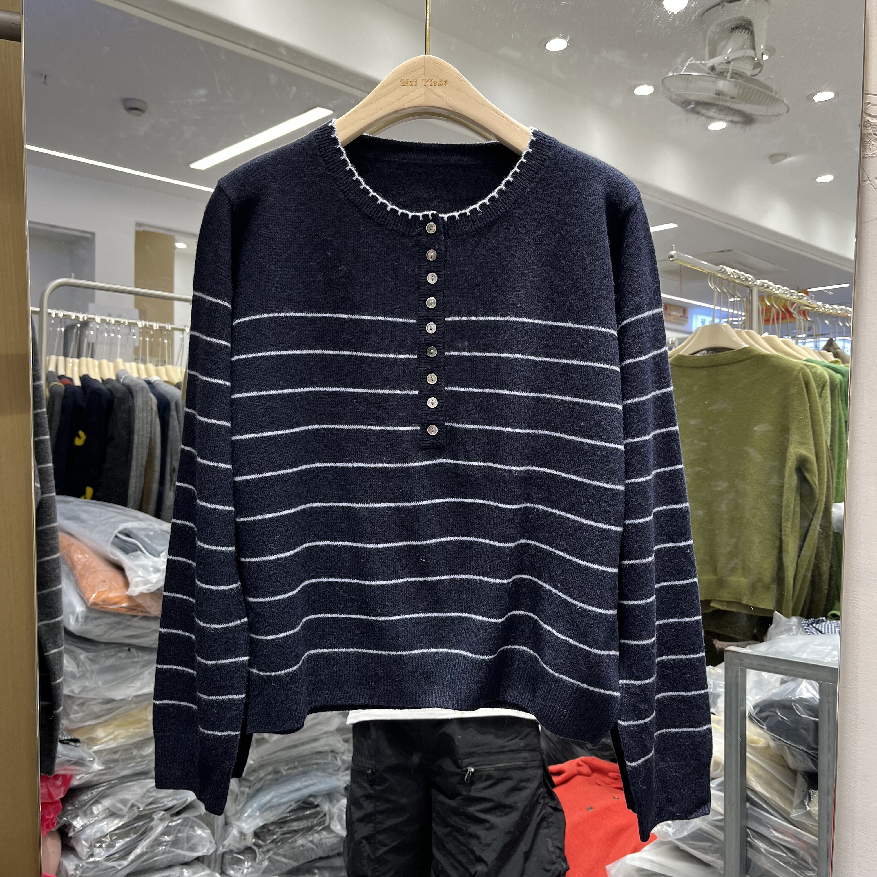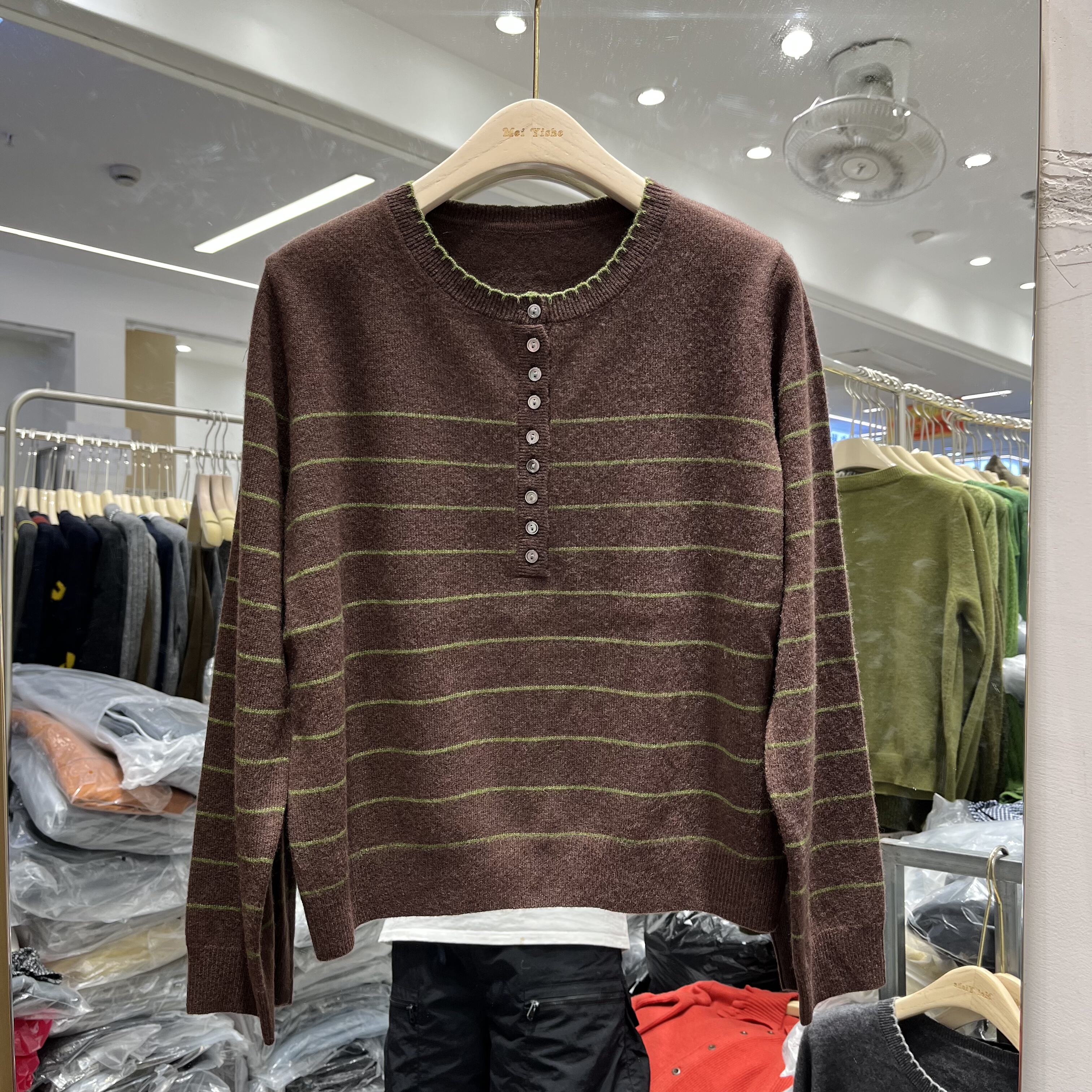 欧洲站2025秋季新款女士圆领条纹拼色羊驼毛长袖毛衣欧货宽松针织