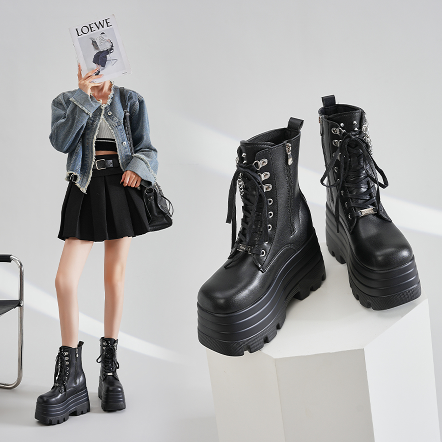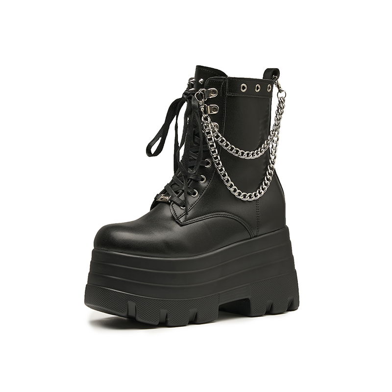 漫展cos增高鞋15cm小个子英伦厚底新款中筒短靴大码马丁靴男女款