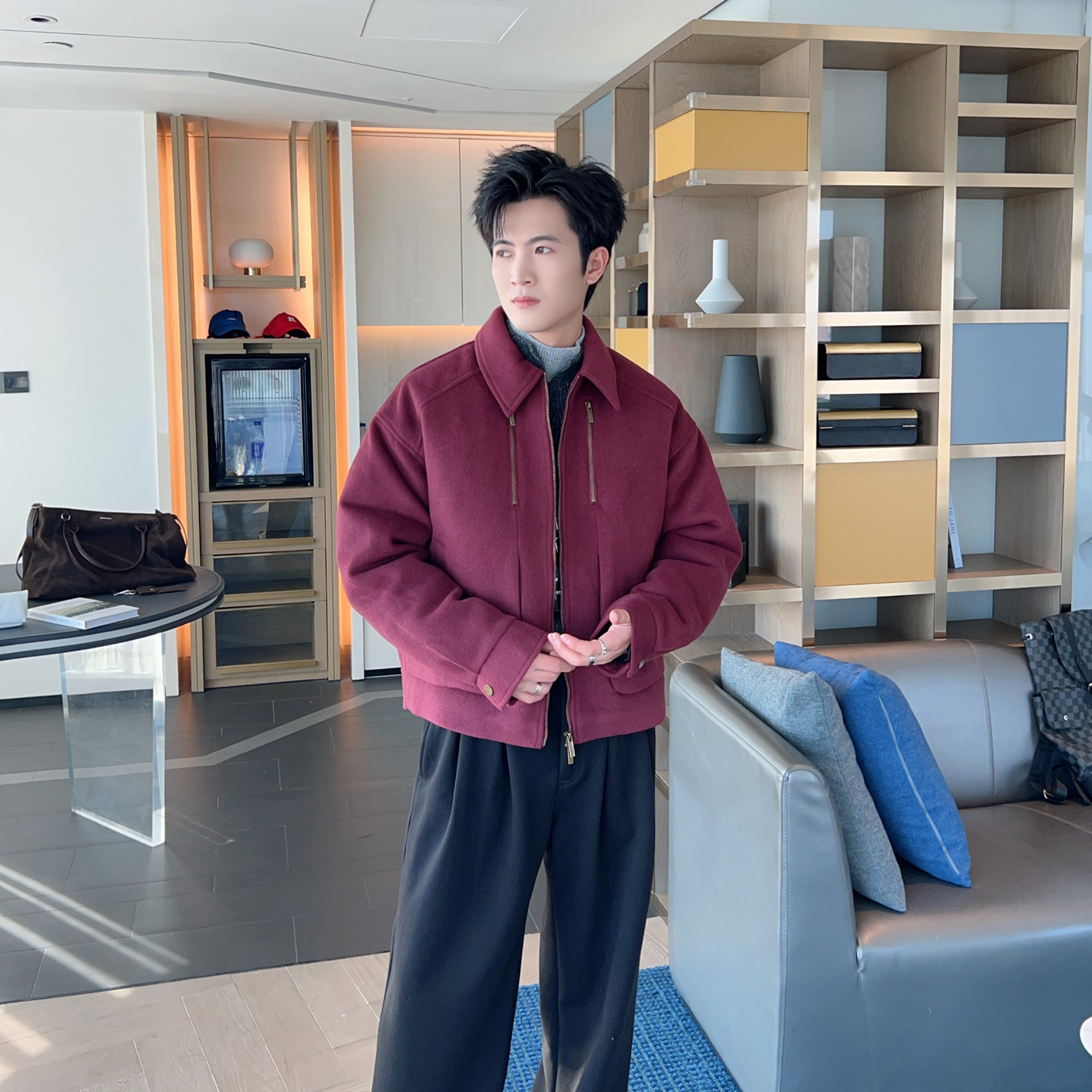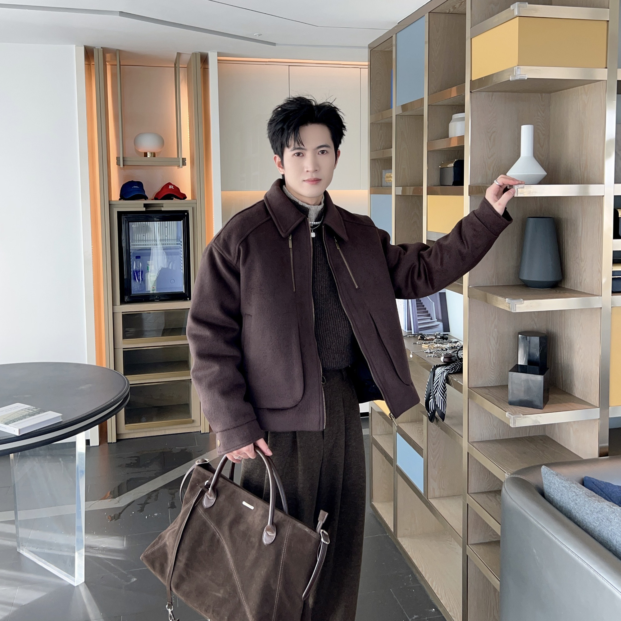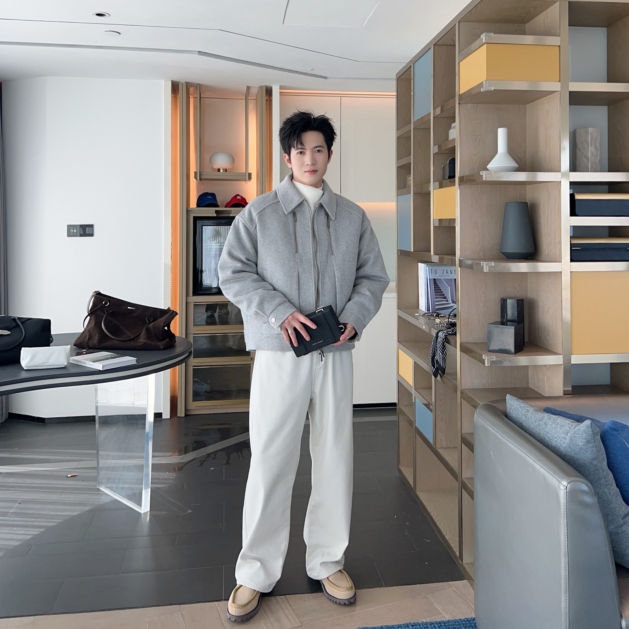 冬季含羊毛呢可拆卸内胆羽绒服男cleanfit时尚宽松加厚白鸭绒外套