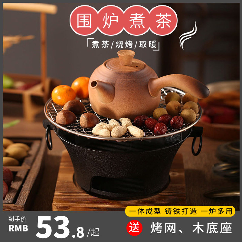 围炉煮茶烧烤炉室内家用烤火铁炉子碳炉陶瓷烤茶网红煮茶炉全套装