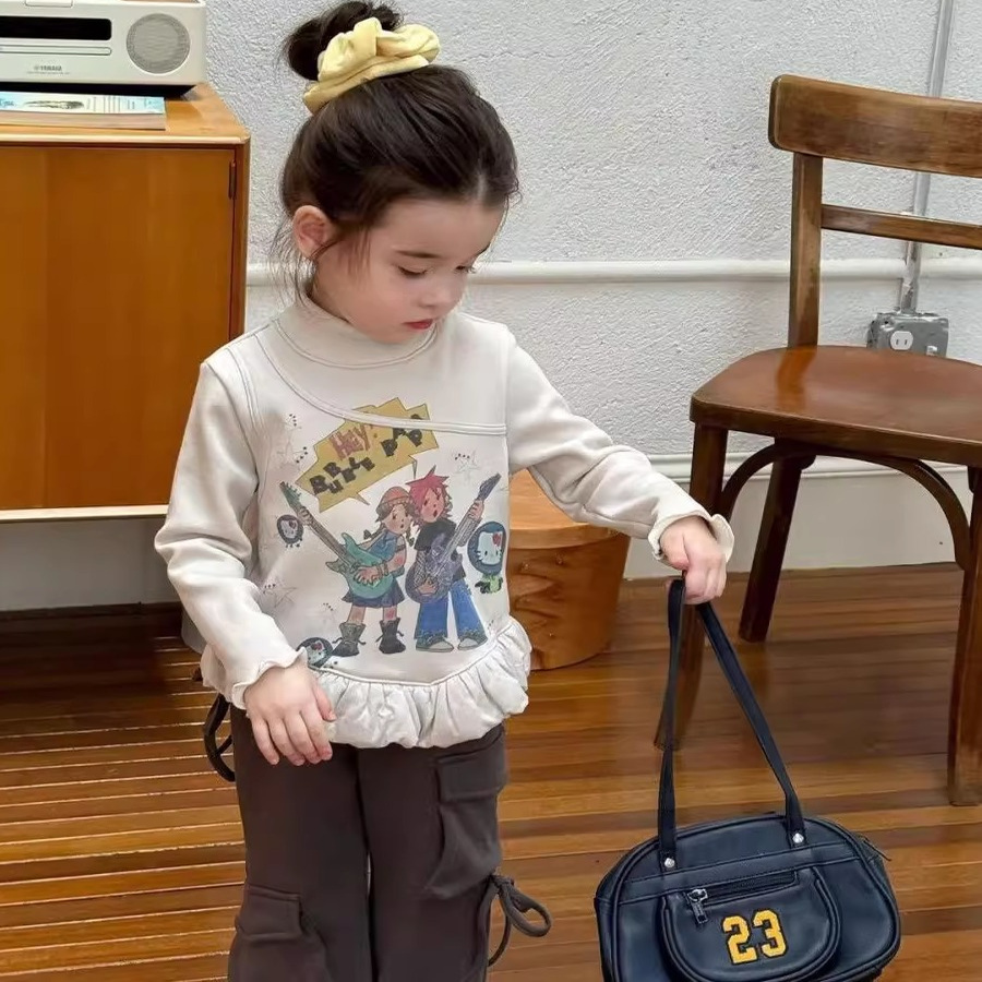 韩版女童一体绒上衣冬装新款宝宝加绒加厚打底衫儿童半高领长袖T3