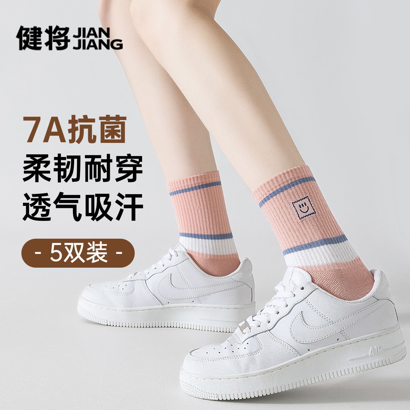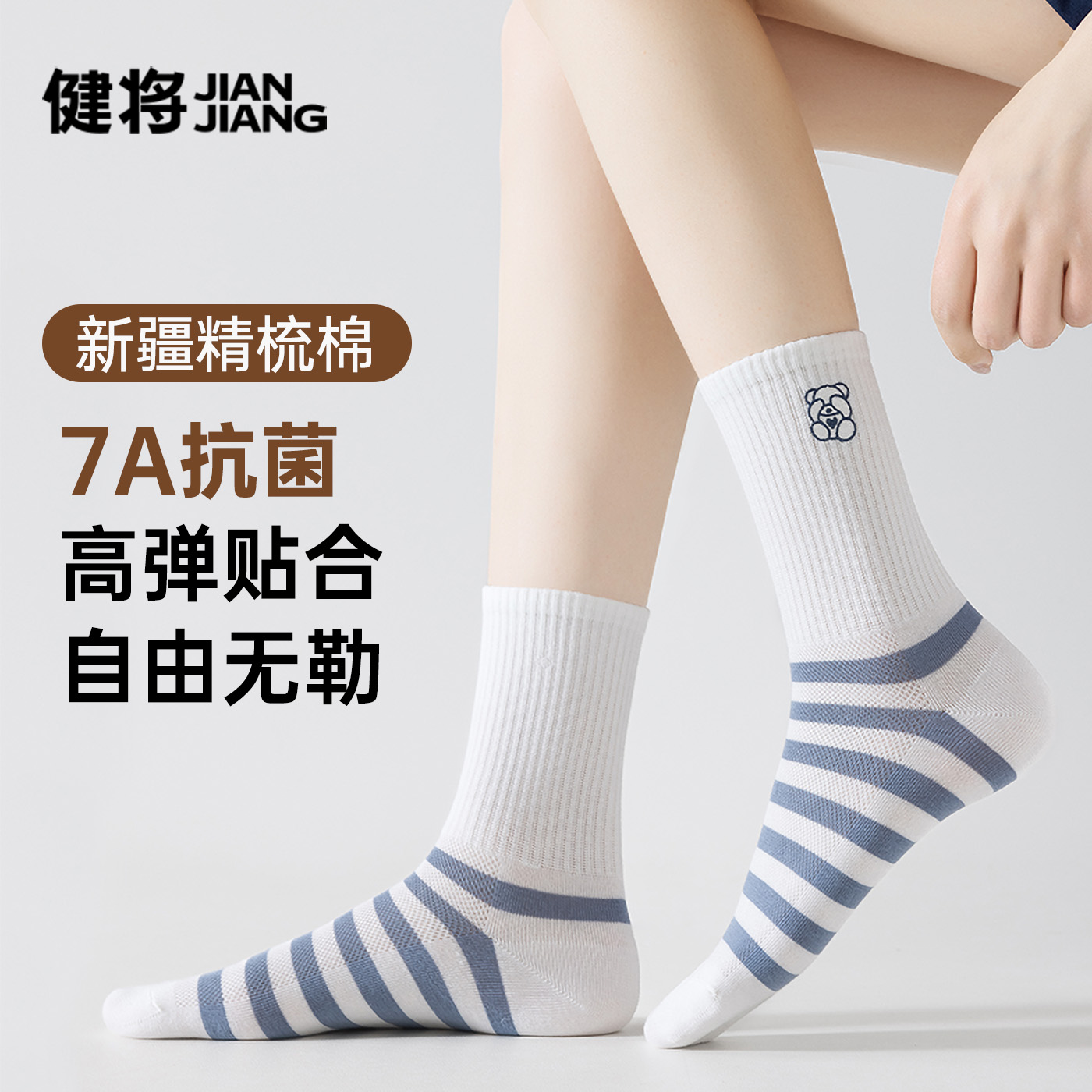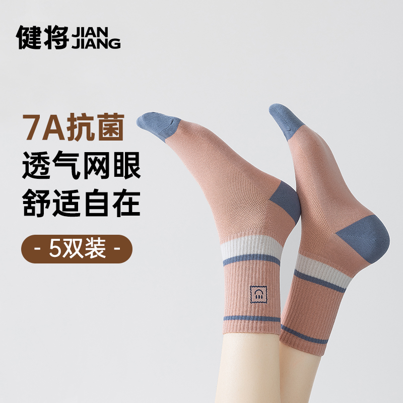 健将女袜子冬新款青少年透气网眼袜女生可爱甜美中筒棉袜无缝袜头