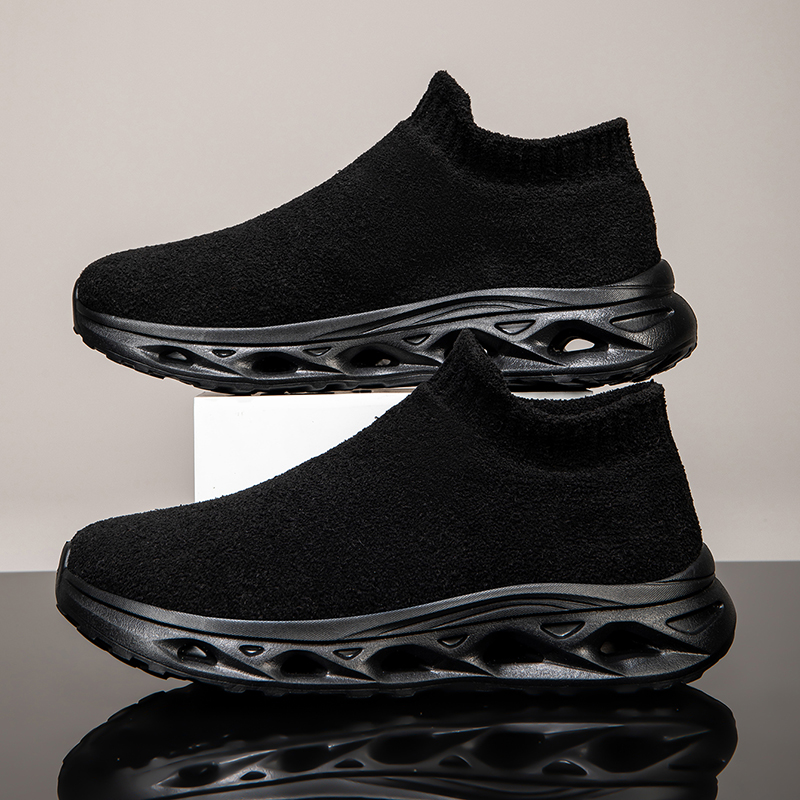 男鞋2025新款秋季休闲百搭黑色跑步运动鞋一脚蹬懒人袜筒老爹潮鞋