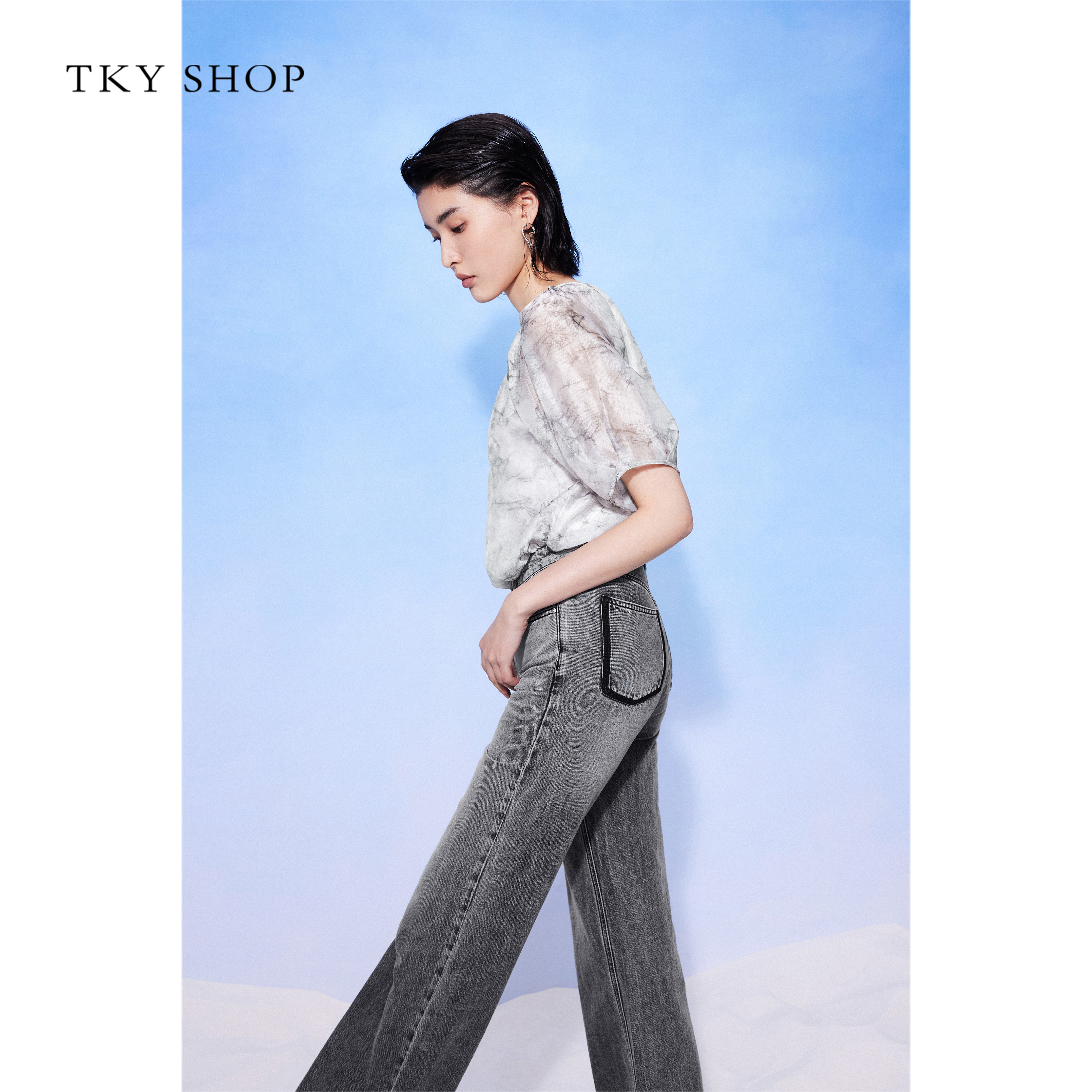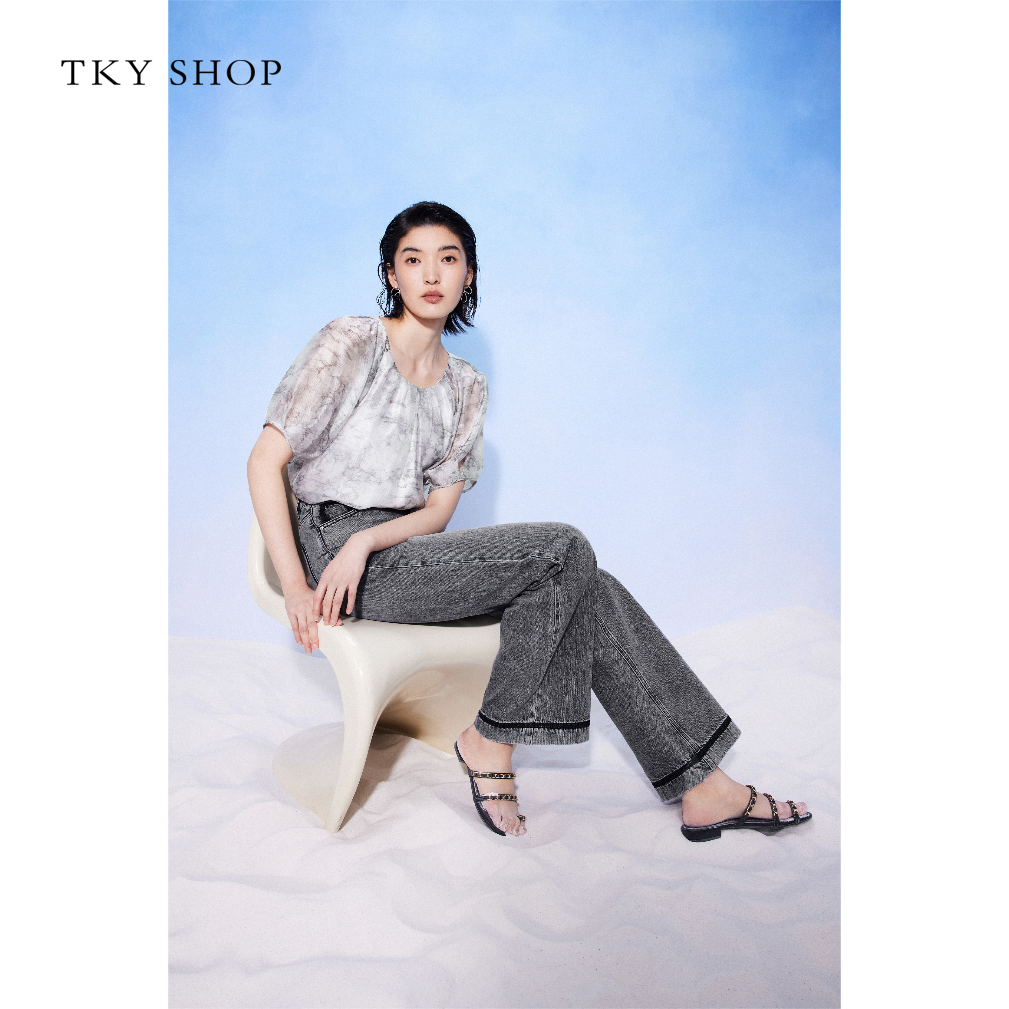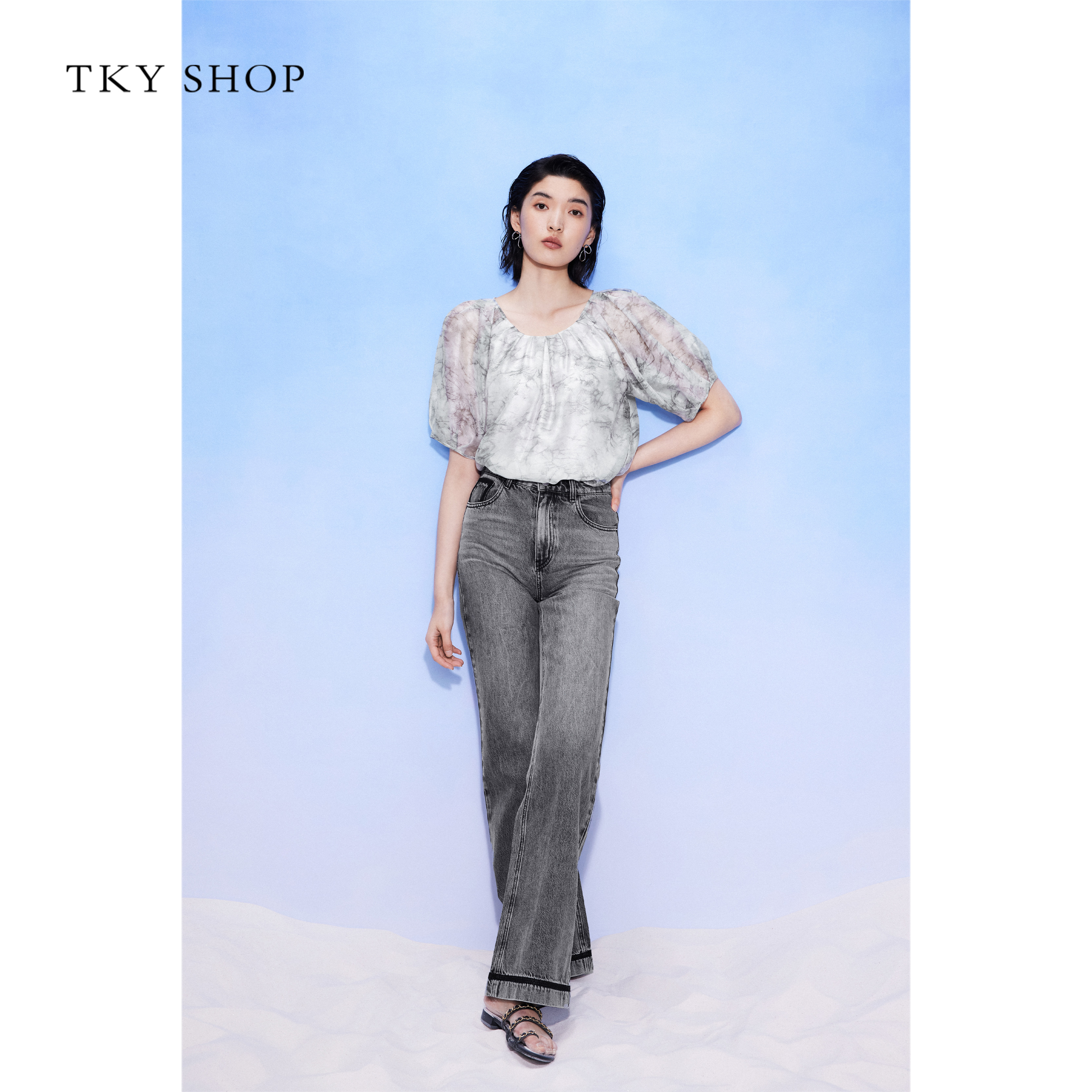 TKYSHOP泡泡袖高级感雪纺上衣