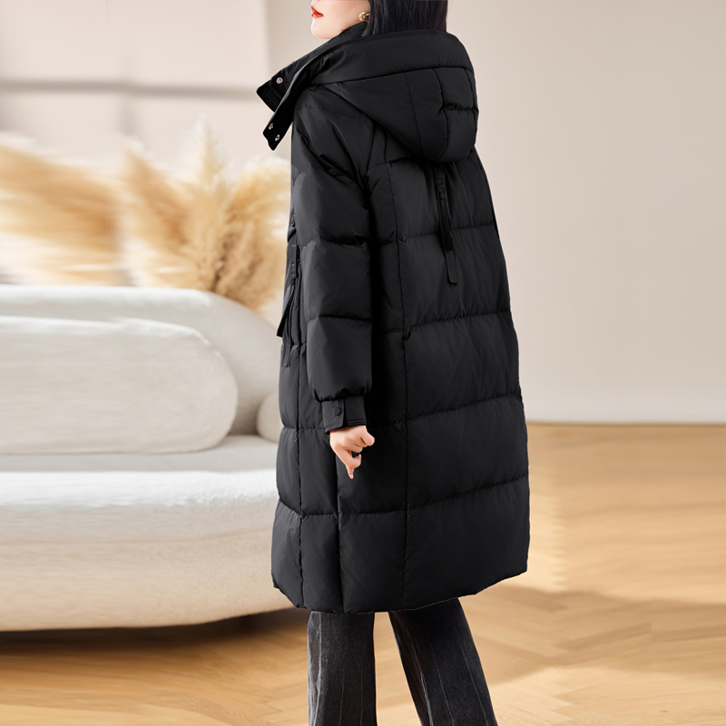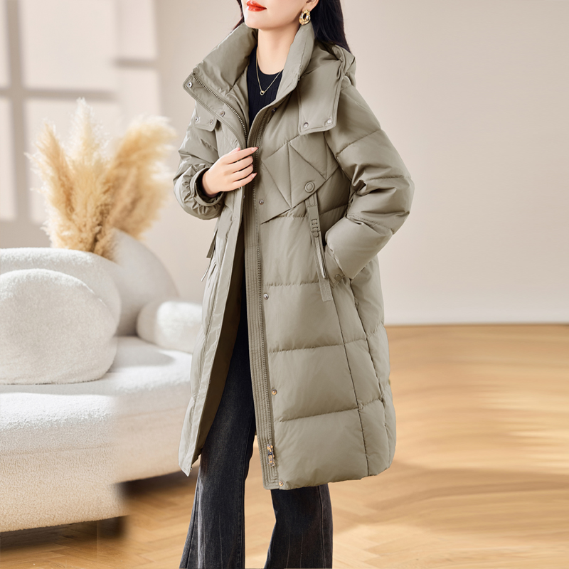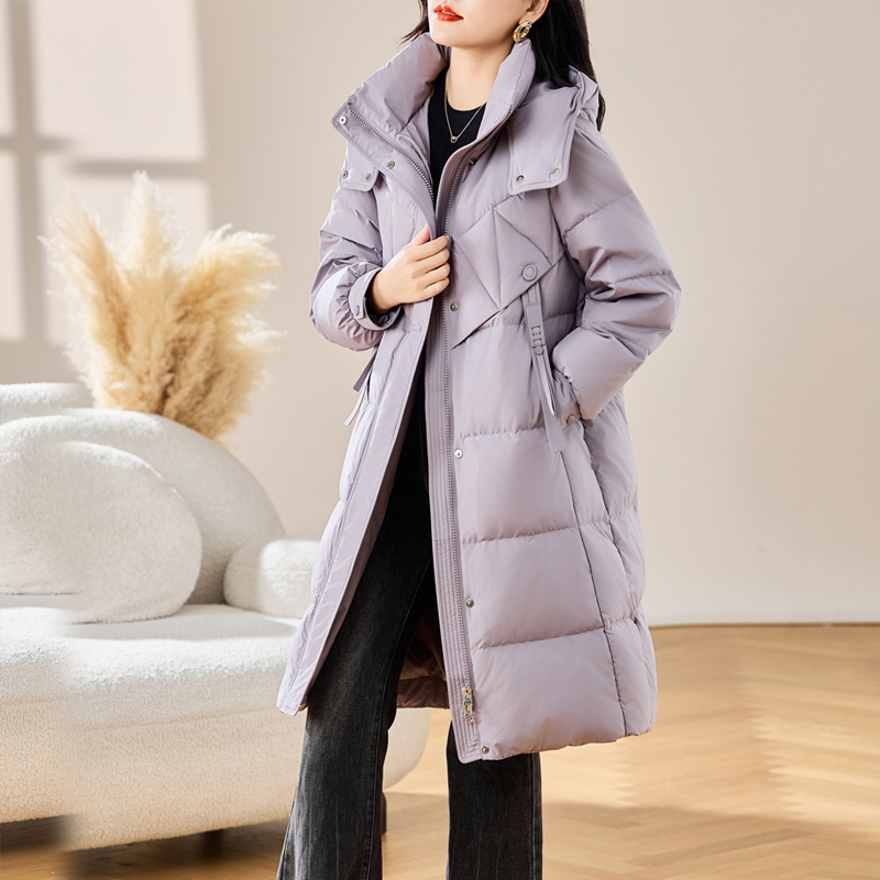 高级感羽绒服女士中长款冬季新款时尚加厚保暖过膝白鸭绒连帽外套