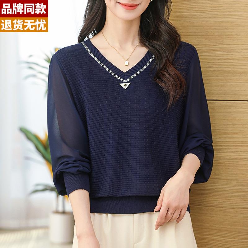 冰丝针织打底衫春装女款2025年新款薄款v领上衣雪纺长袖桑蚕丝T恤