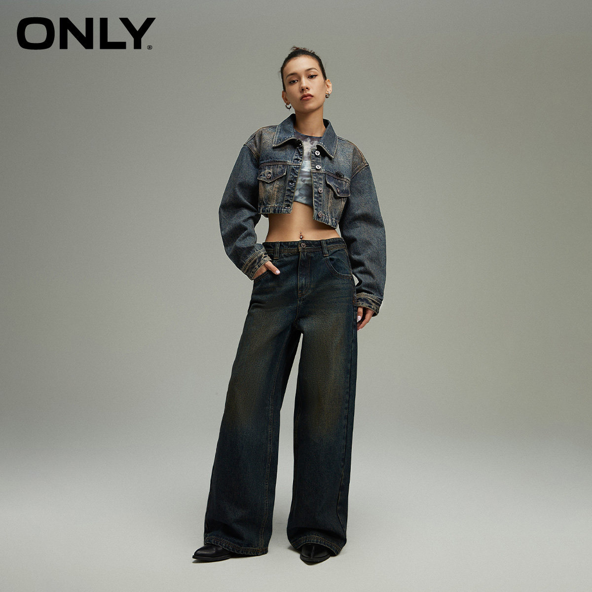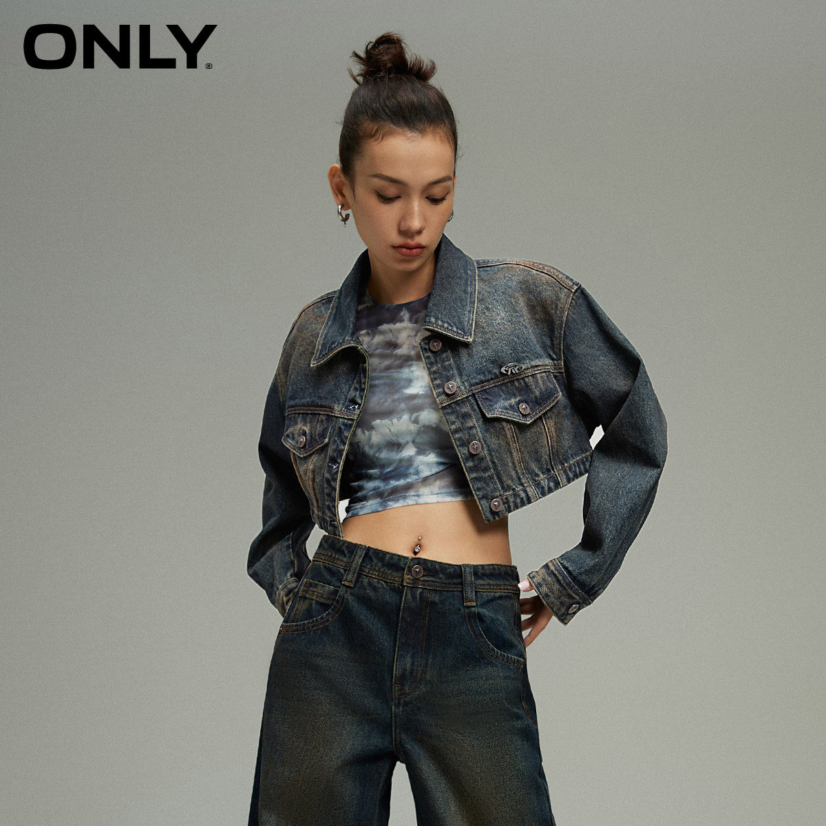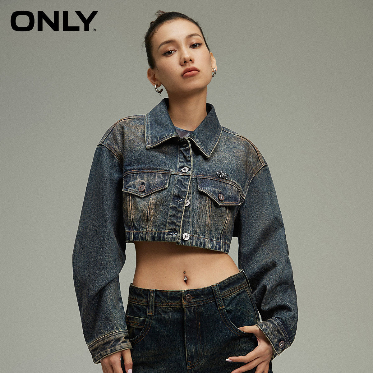 ONLY简约做旧翻领牛仔短款外套