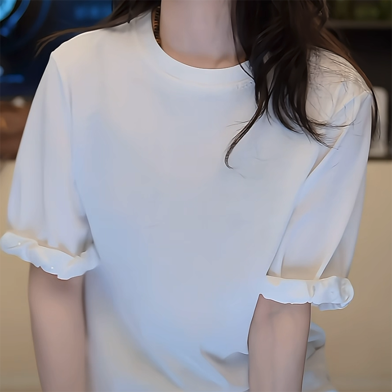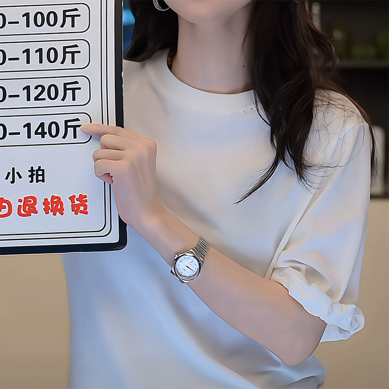 高级感纯棉中长款圆领素面纯色短袖T恤女宽松显瘦时尚百搭上衣潮