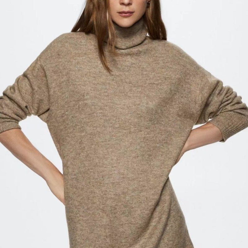 妞妞家秋冬款女士欧美风宽版高领羊毛长袖套头毛衣8034