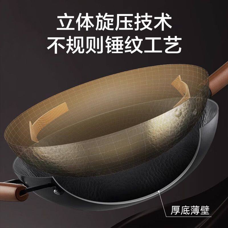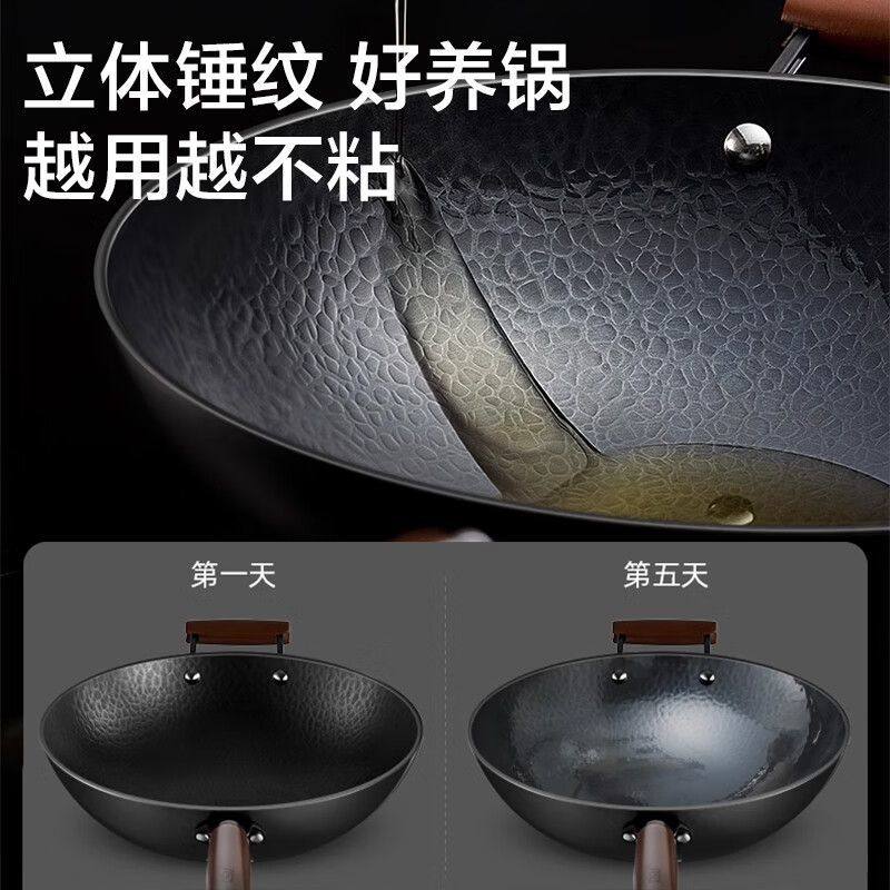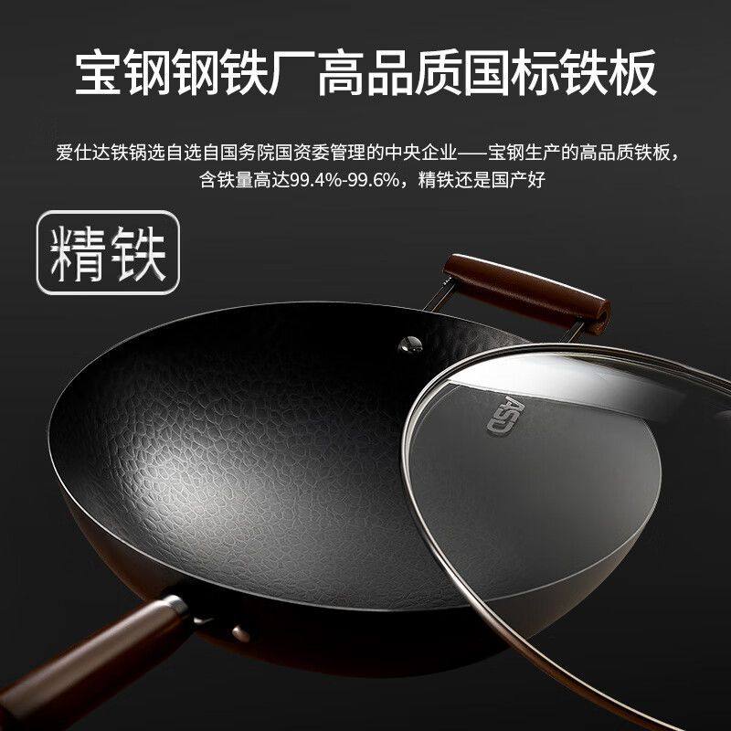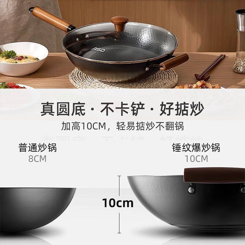 爱仕达大铁锅炒锅家用圆底炒菜锅老式锤纹铁锅无涂层锅燃气灶适用