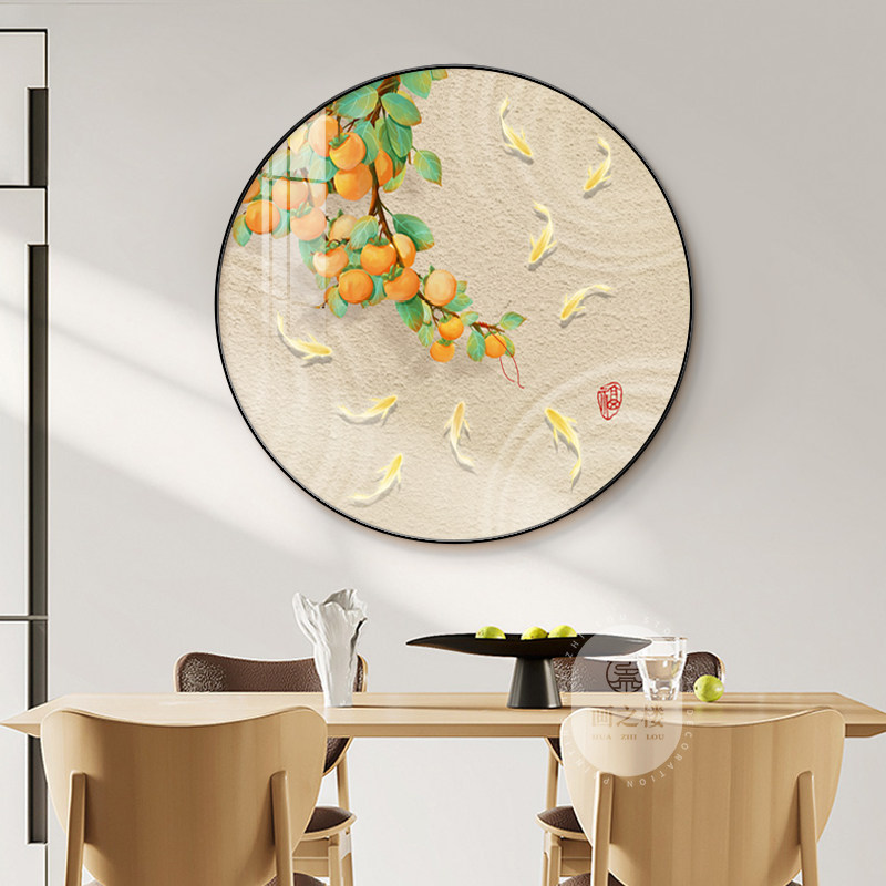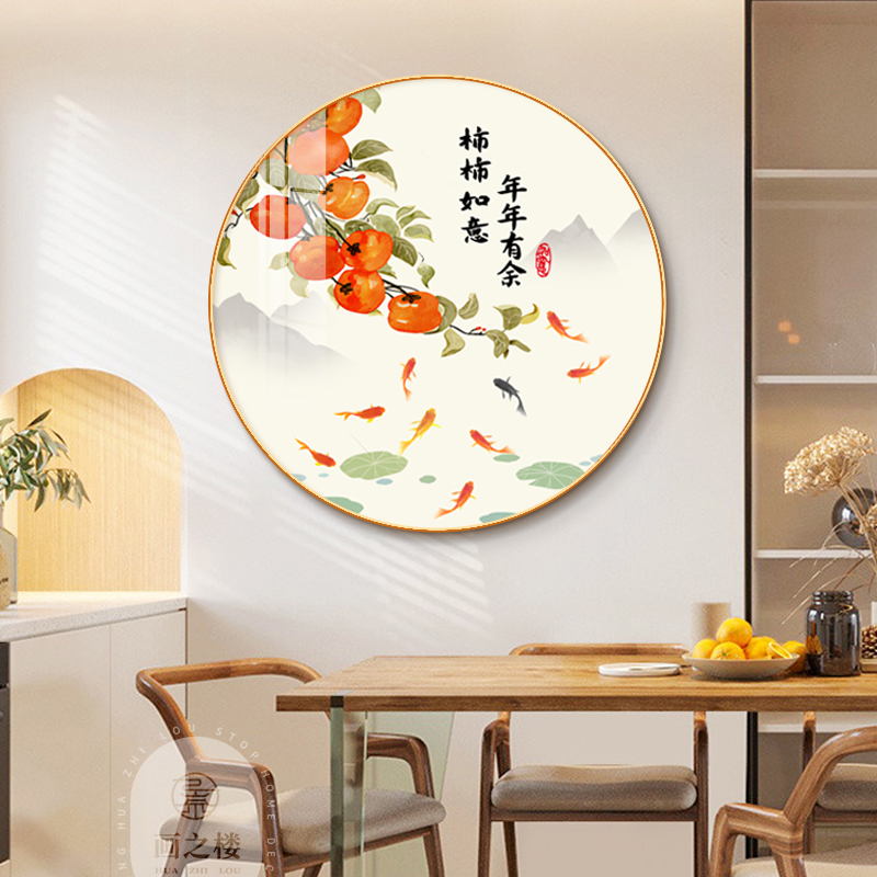 入户圆形玄关装饰画新中式福字喜庆走廊过道壁画九鱼图寓意好挂画