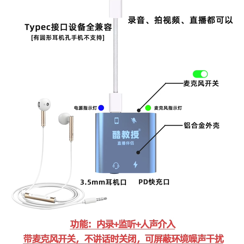 黑科技无人直播内录头手机内录苹果内录头声卡转换器OBS电脑内录