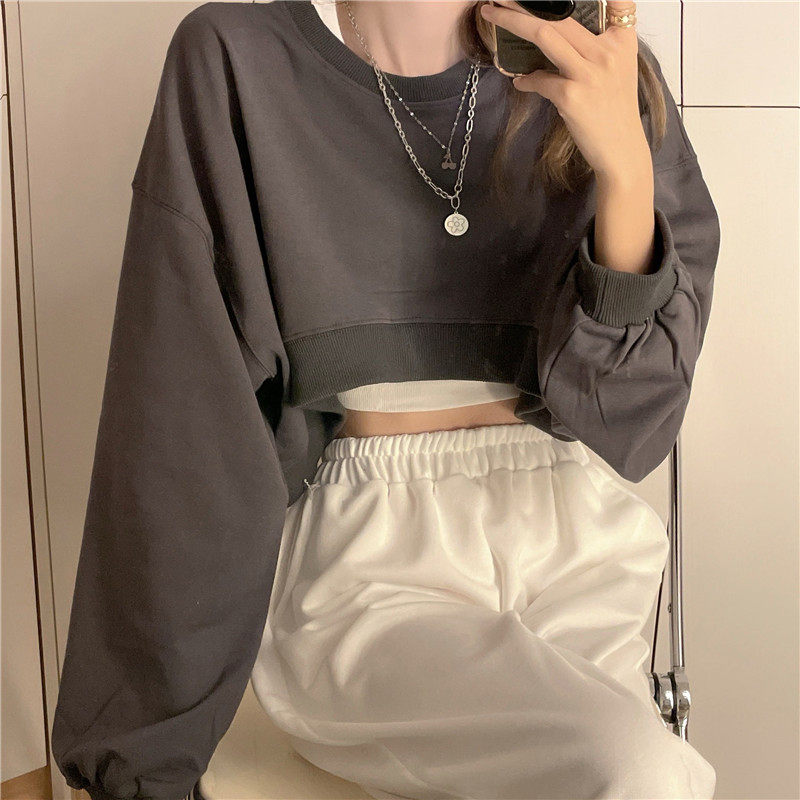 短款卫衣女潮ins早秋薄款宽松韩版学生显瘦长袖休闲运动上衣外套