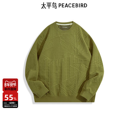 太平鸟男装异材拼接卫衣秋季空气层提花圆领宽松上衣潮流