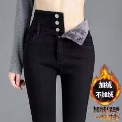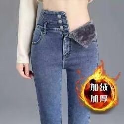 加绒加厚牛仔裤女士2025年新款秋冬季高腰显瘦紧身小脚铅笔长裤子