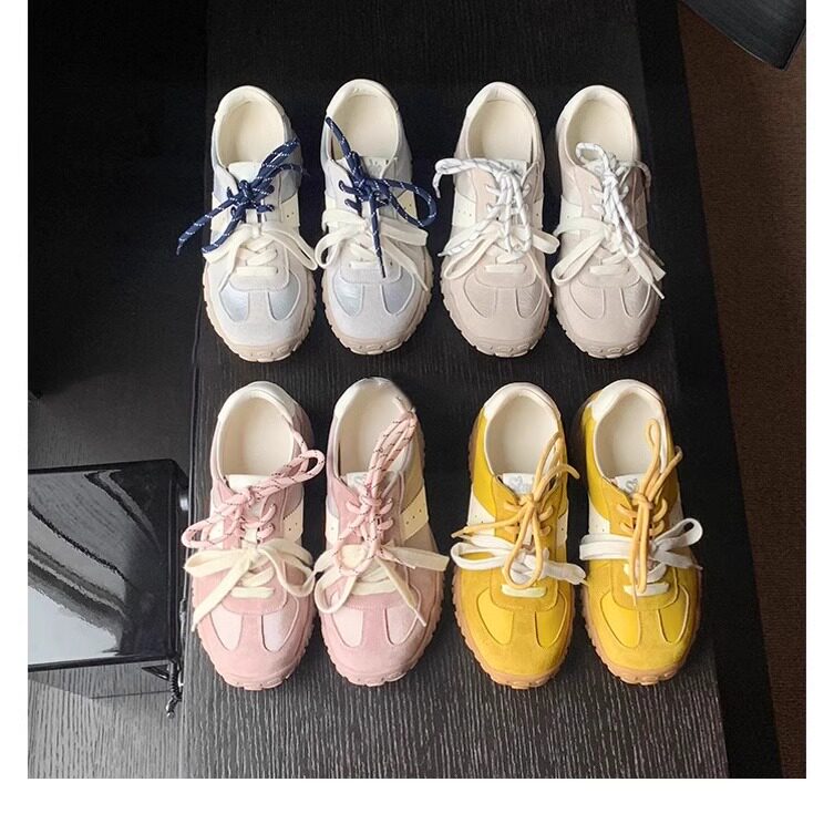 真皮7cm内增高拼接圆头厚底德训鞋2026春季鸳鸯带休闲运动阿甘鞋
