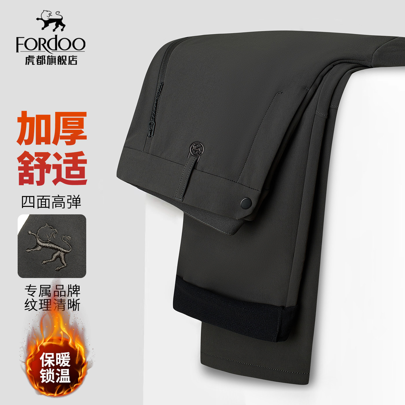 【加厚保暖】虎都官方商务休闲裤男2025秋冬新款加厚弹力直通长裤
