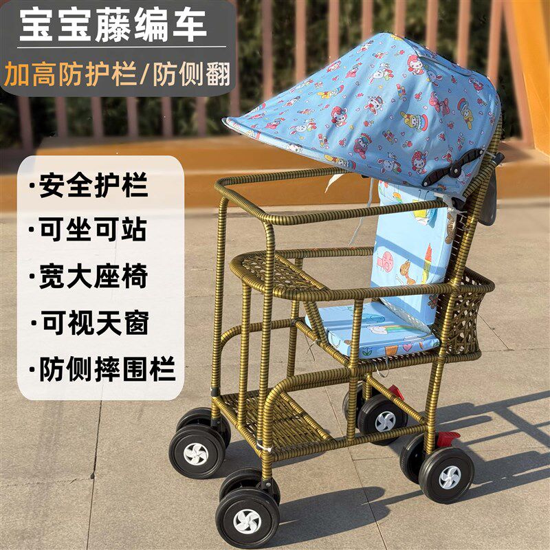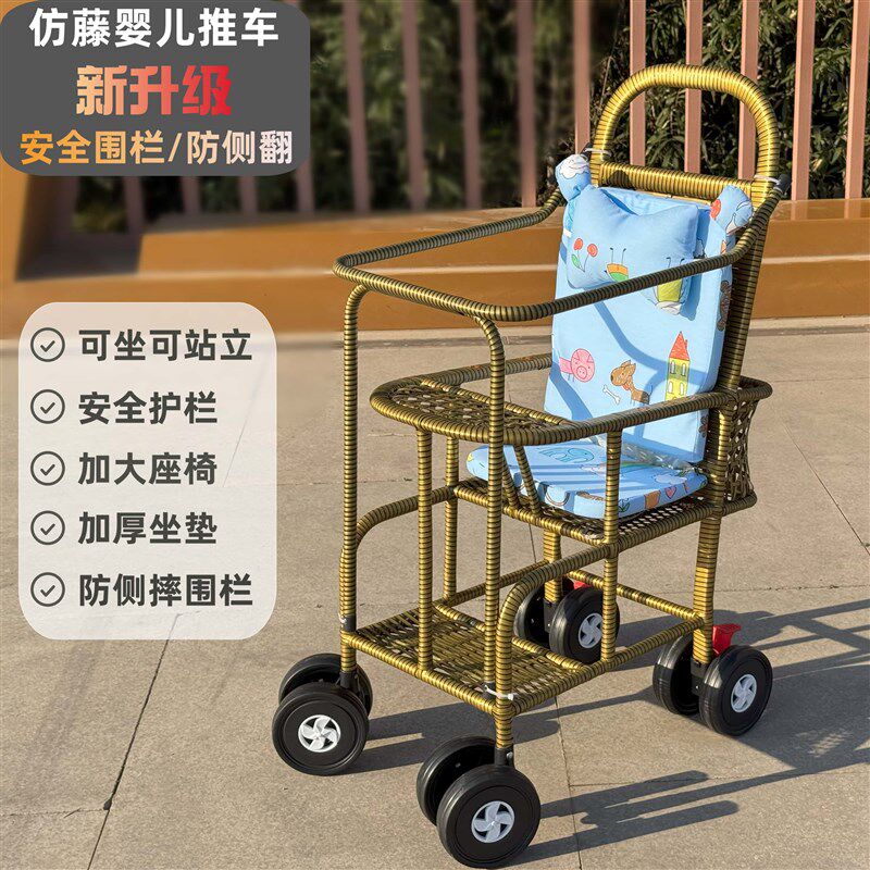 婴儿仿藤推车藤椅手推车夏季儿童竹藤车小孩宝宝藤编推车轻便餐车