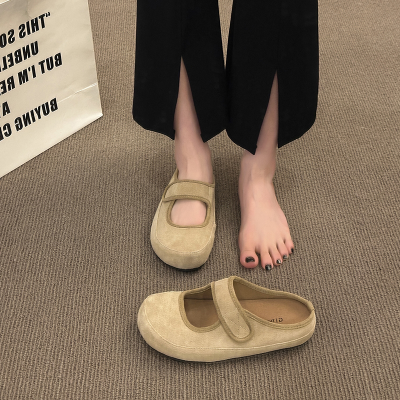 厚底勃肯鞋包头半拖鞋女外穿2025春夏新款平底博肯半托玛丽珍单鞋