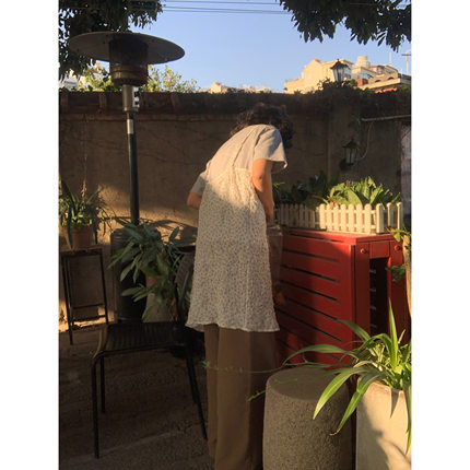 复古叠穿H型碎花吊带连衣裙