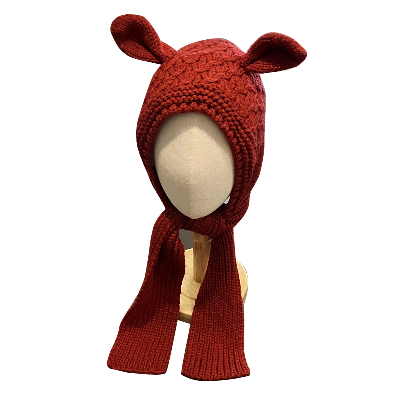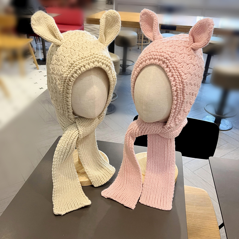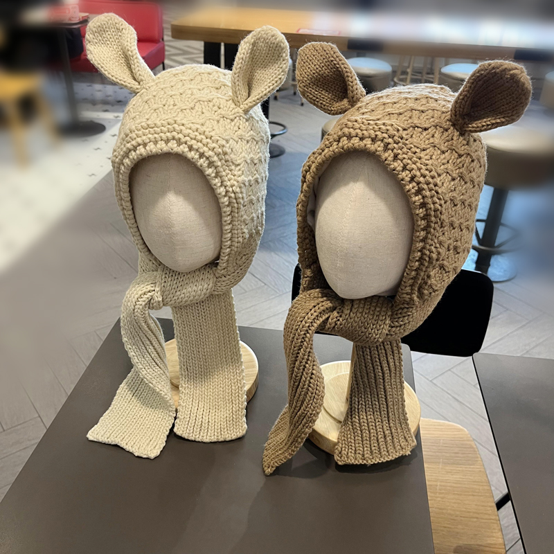 男宝宝帽子围脖一体帽可爱儿童加绒保暖女童毛线帽套头护耳帽冬季