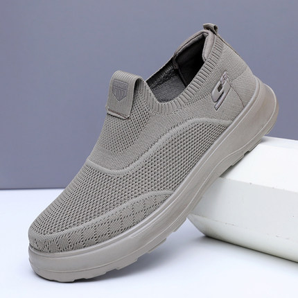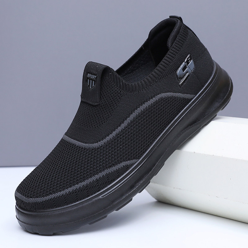 2025春季新款老北京布鞋圆头网面休闲鞋透气健步鞋一脚蹬爸爸单鞋