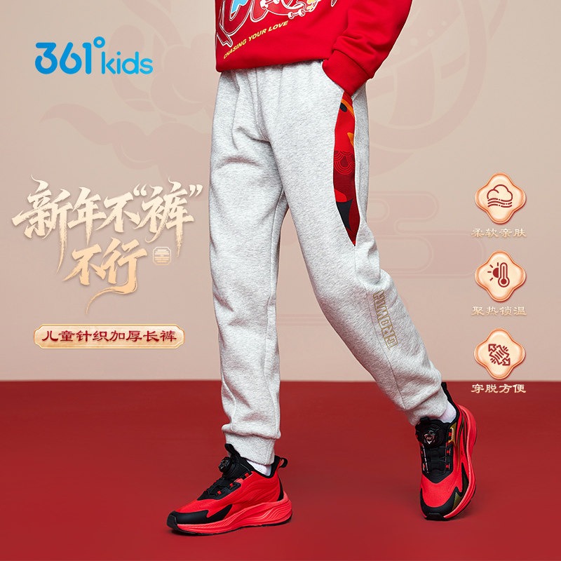 361童装 男童针织加绒长裤 儿童宽松加厚运动裤 2026春季休闲裤子