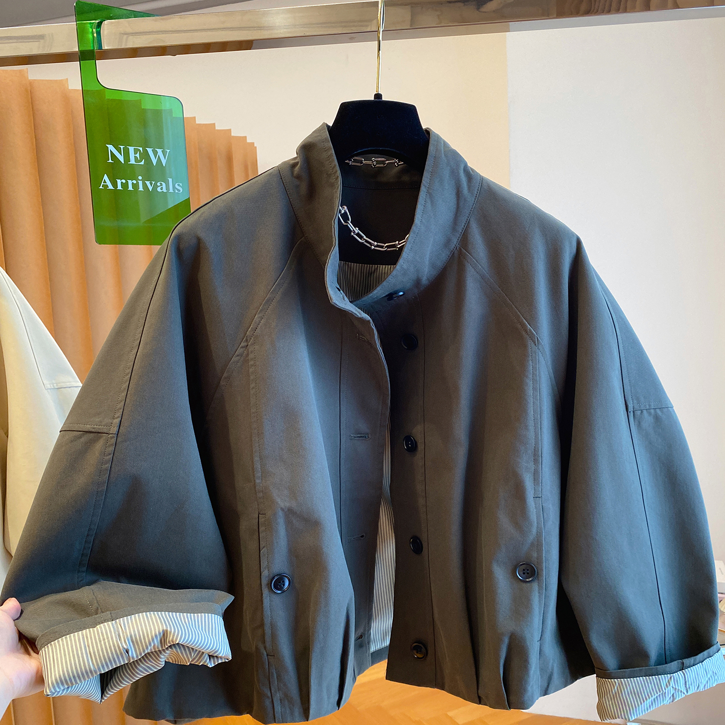 欧货英伦风立领夹克外套女2025新款宽松休闲内里条纹短款风衣上衣