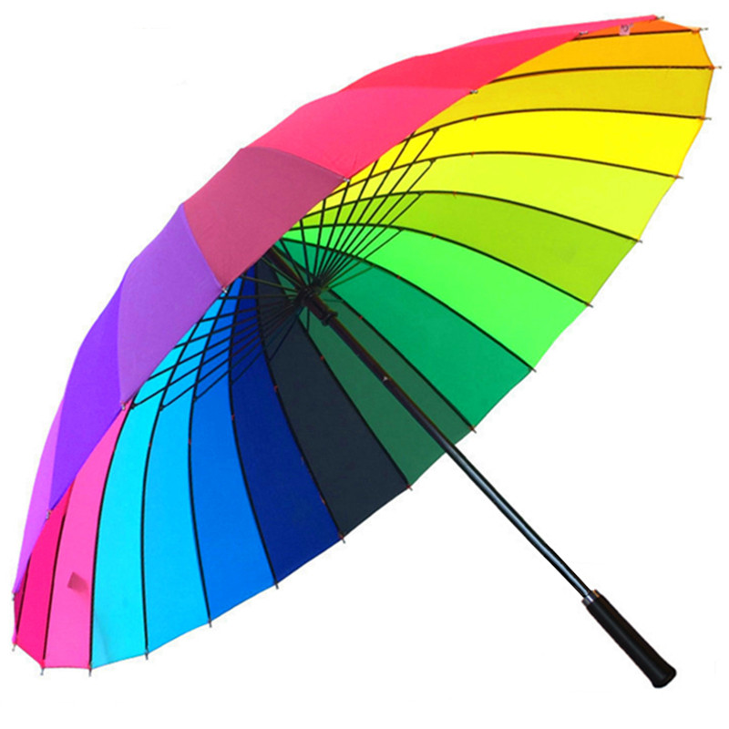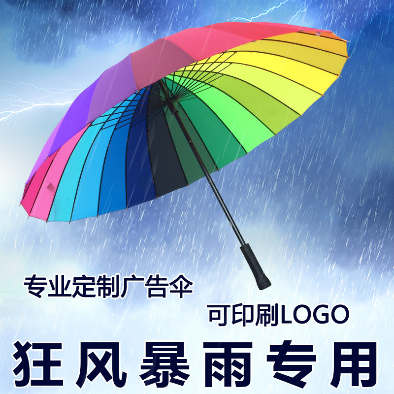 24骨超大彩虹大号长柄雨伞三人男士广告伞定制logo礼品伞印字订制