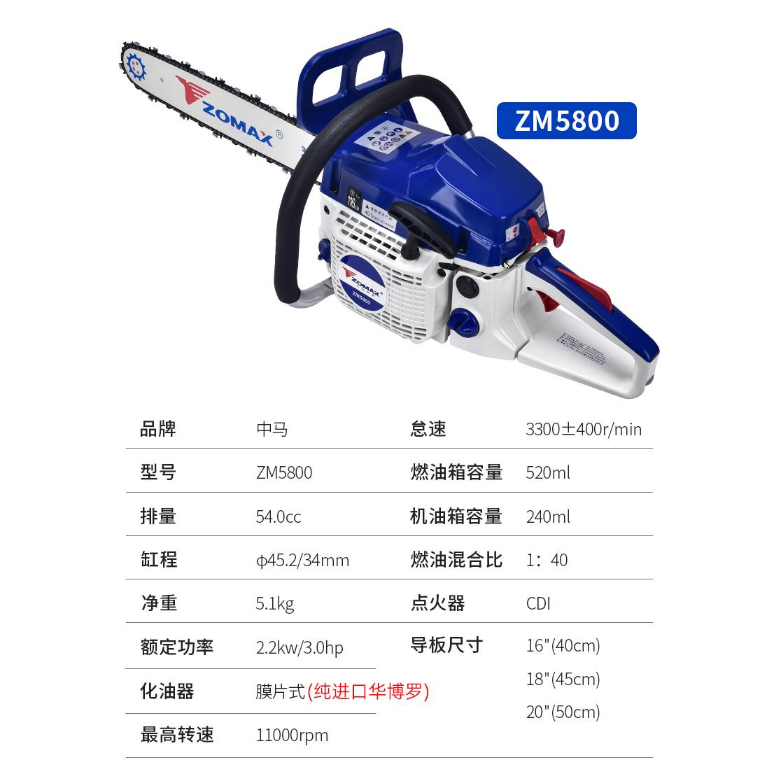 正品中马油锯小型家用锯树油锯伐木锯大功率进口zomax汽油链锯