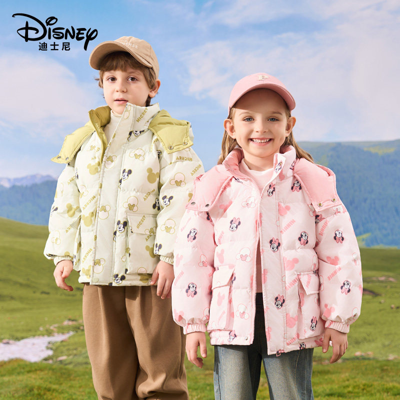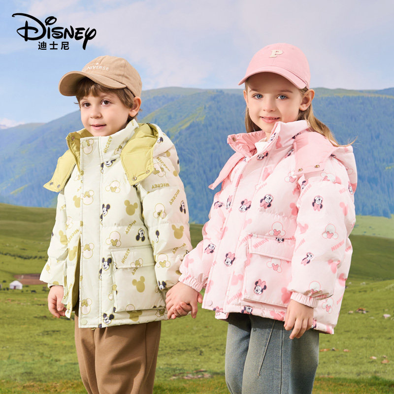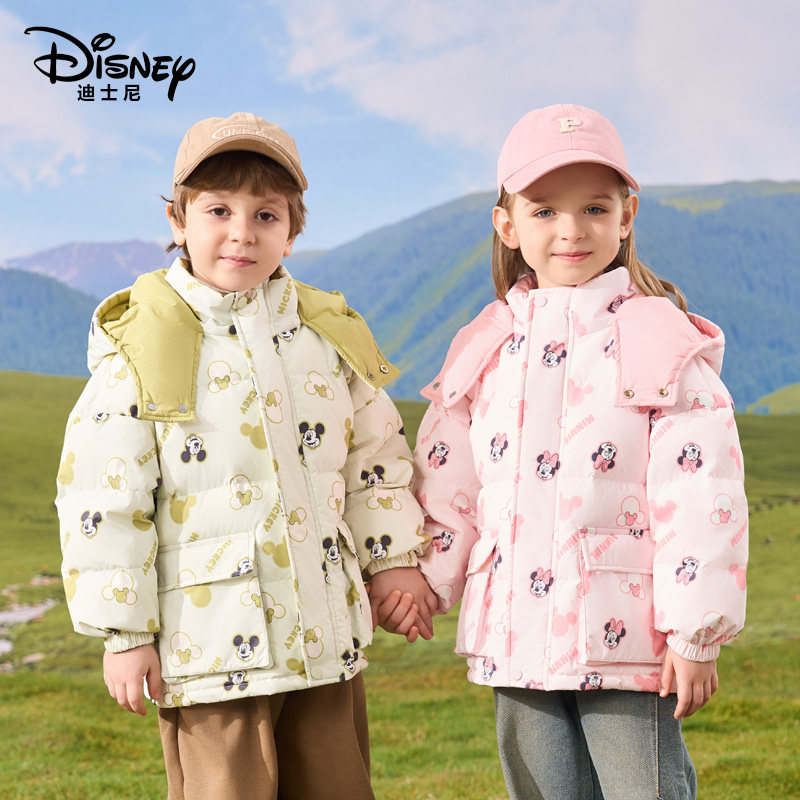 迪士尼儿童装羽绒服男女童双面穿满印加厚连帽外套上衣冬装中小童