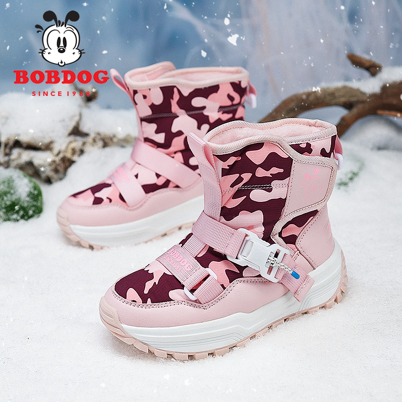 巴布豆童鞋男童棉靴儿童加绒加厚保暖棉鞋防水女童靴子防滑雪地靴