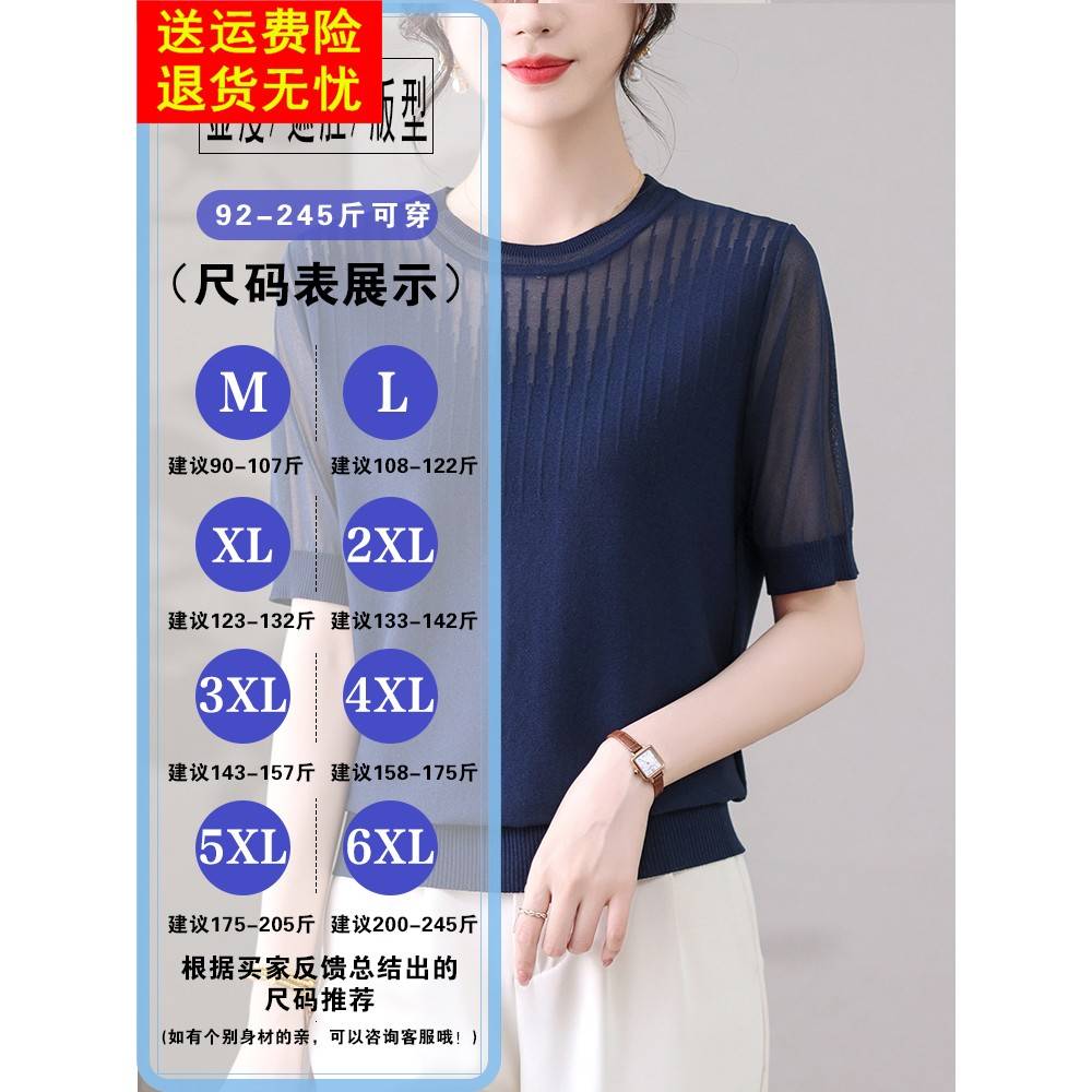 2025年新款冰丝桑蚕丝短袖T恤宽松显瘦薄款针织衫洋气小衫上衣女