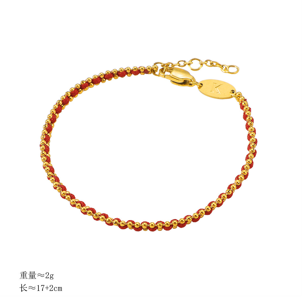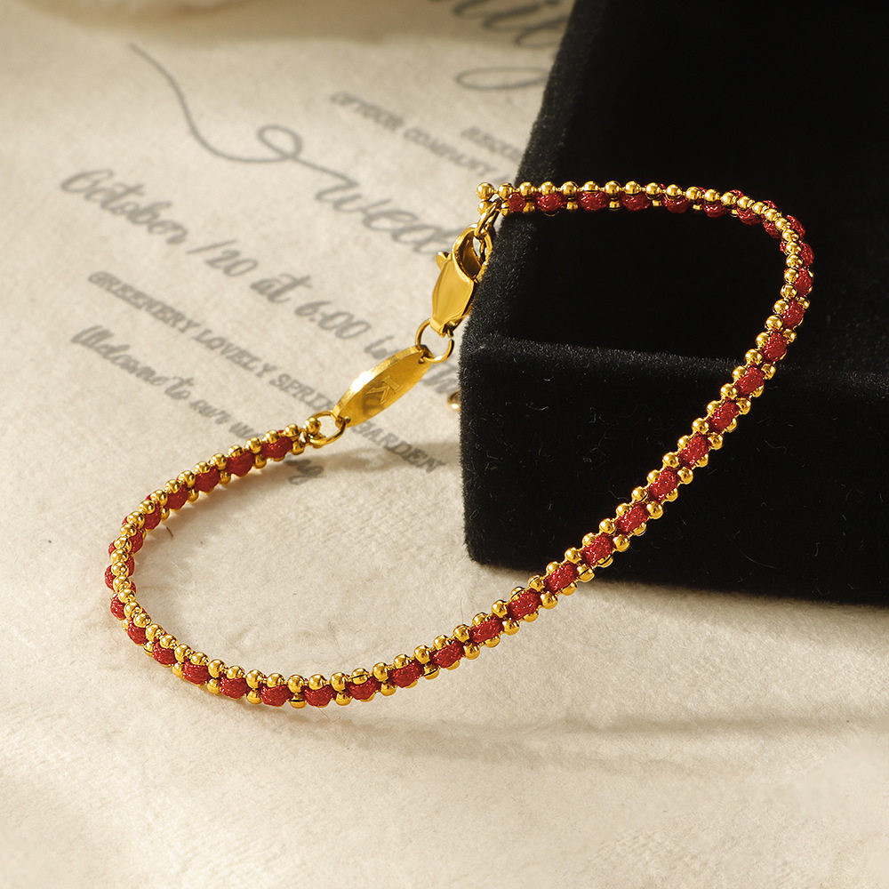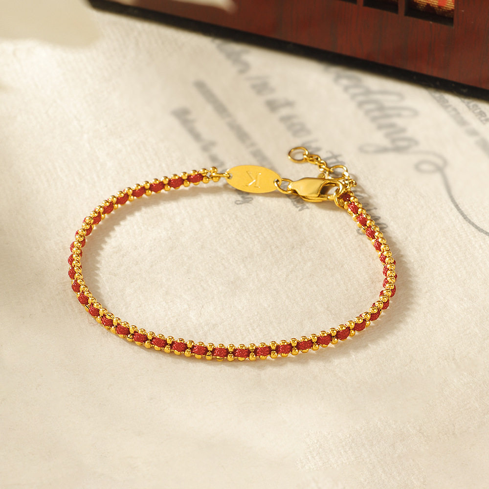不掉色~法国小红绳经典编织螺纹红绳本命年手链钛钢手绳男女同款