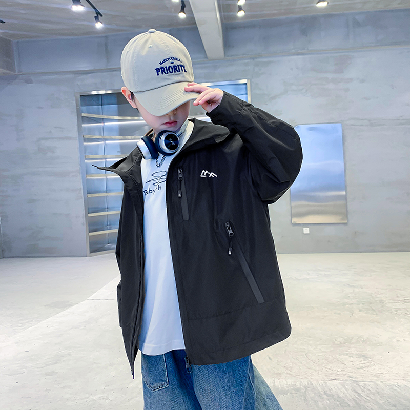 男童早秋装防风防水登山冲锋衣外套2025新款儿童男孩春秋酷帅夹克