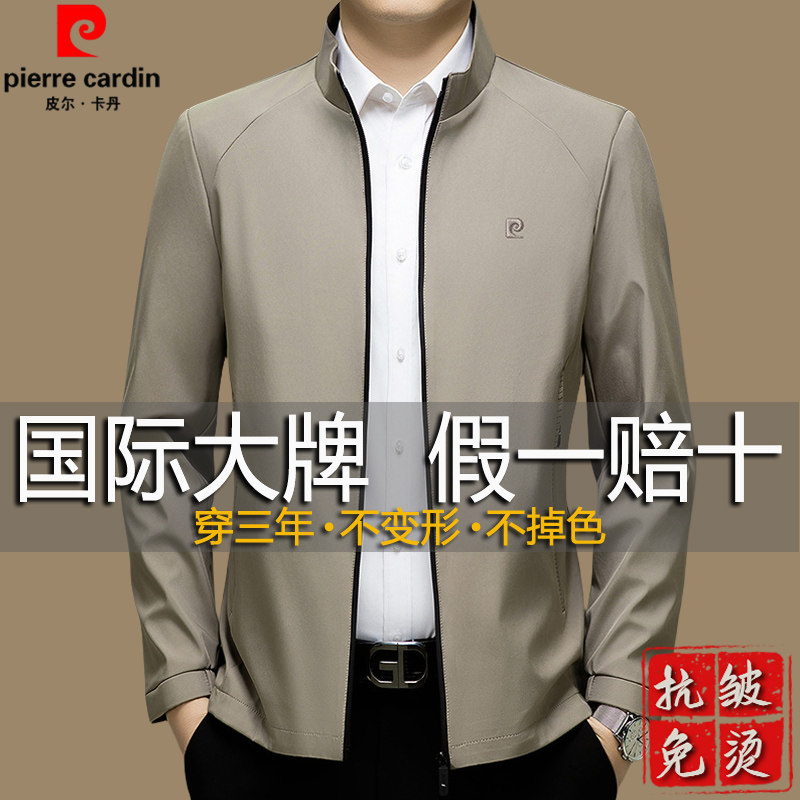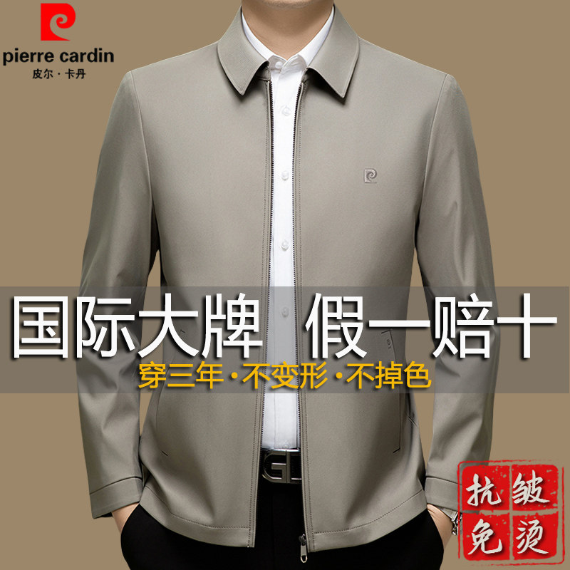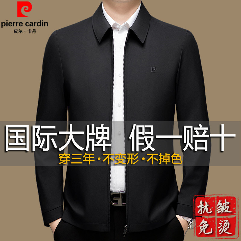正品皮尔卡丹男士夹克春季新款中老年行政干部商务外套爸爸装免烫