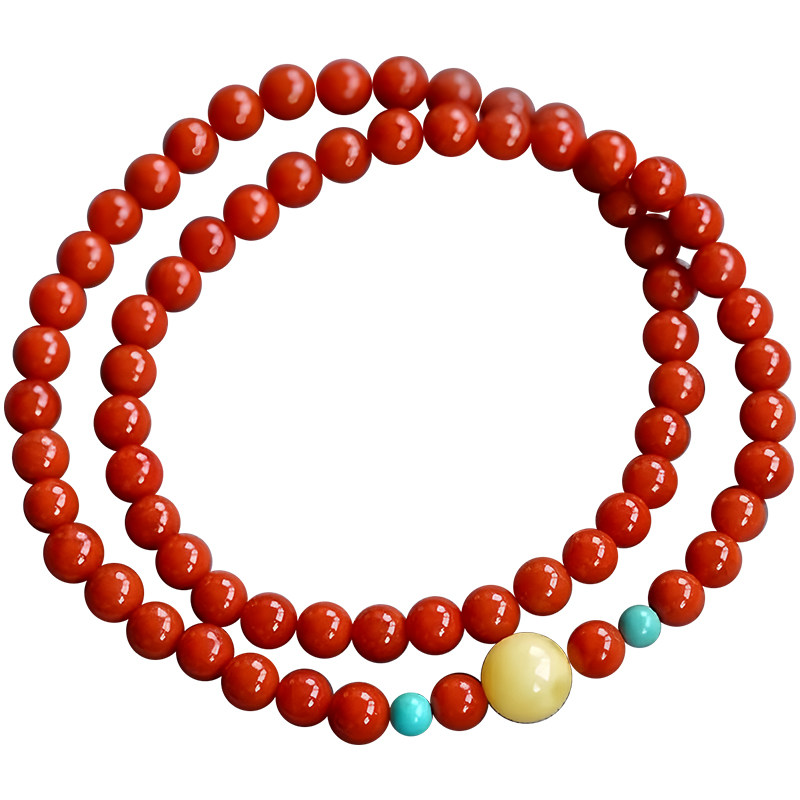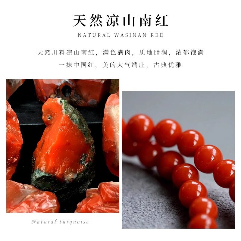 天然凉山南红玛瑙手链男女多圈满肉柿子红蜜蜡绿松石手串本命年