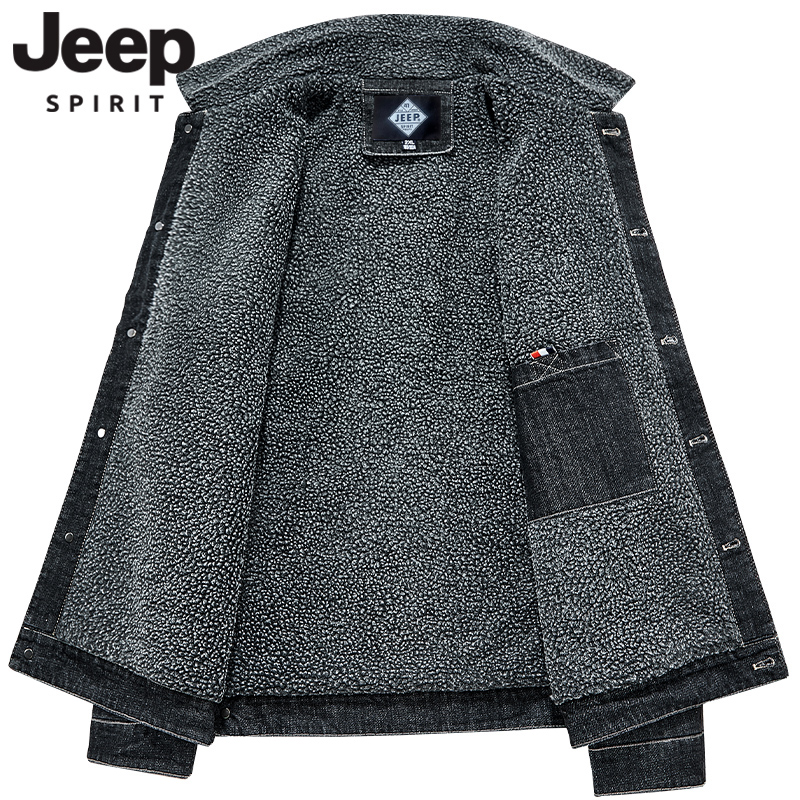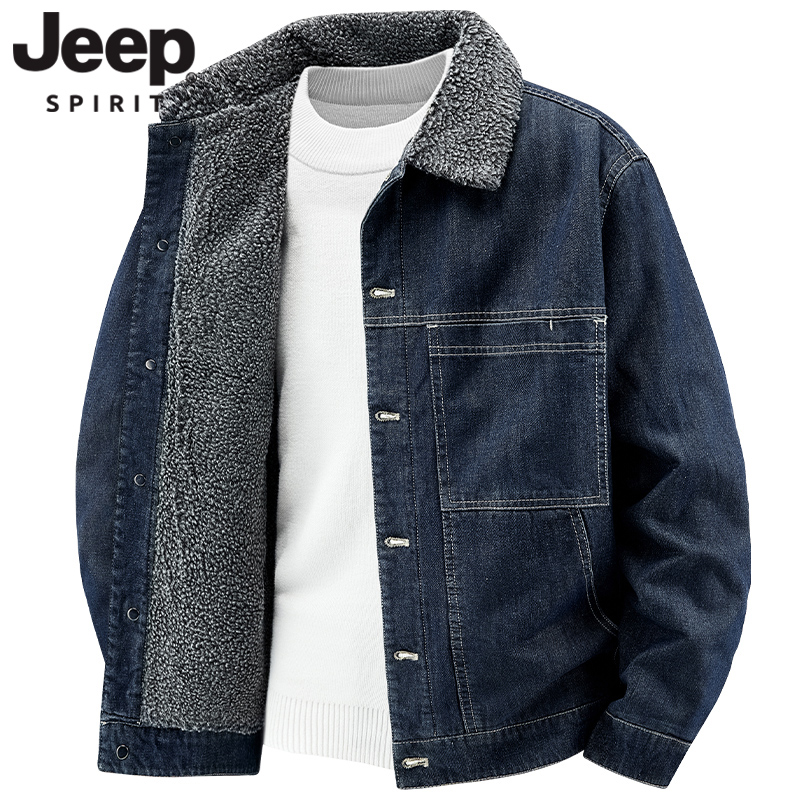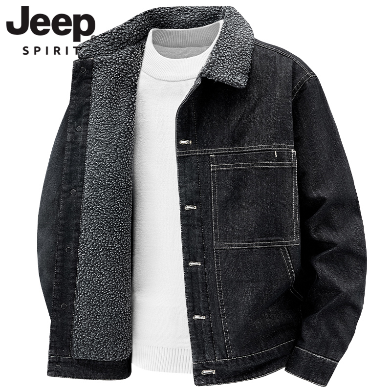JEEP吉普加绒牛仔夹克男2025秋冬新款加厚保暖多口袋羊羔绒外套男
