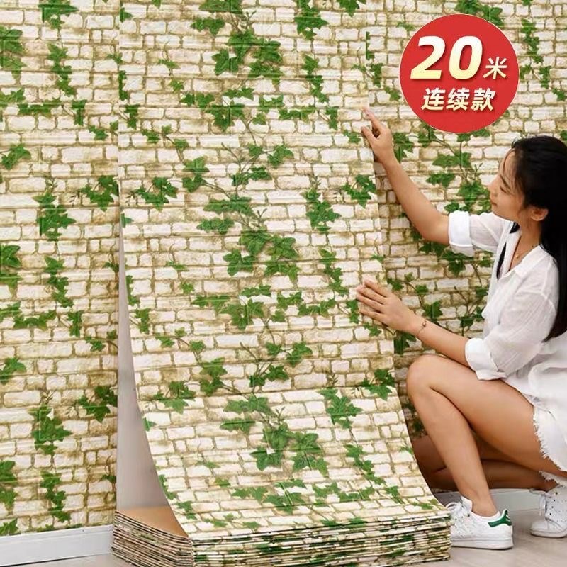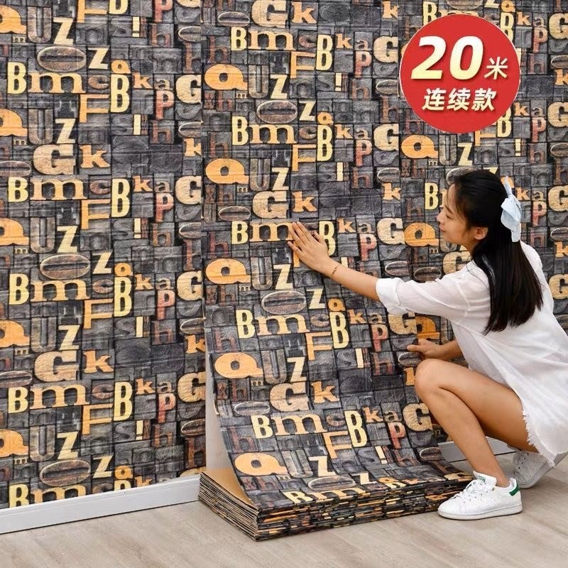 墙纸3d立体墙贴防水防q潮壁纸复古文化砖纹背景墙翻新装饰自粘贴