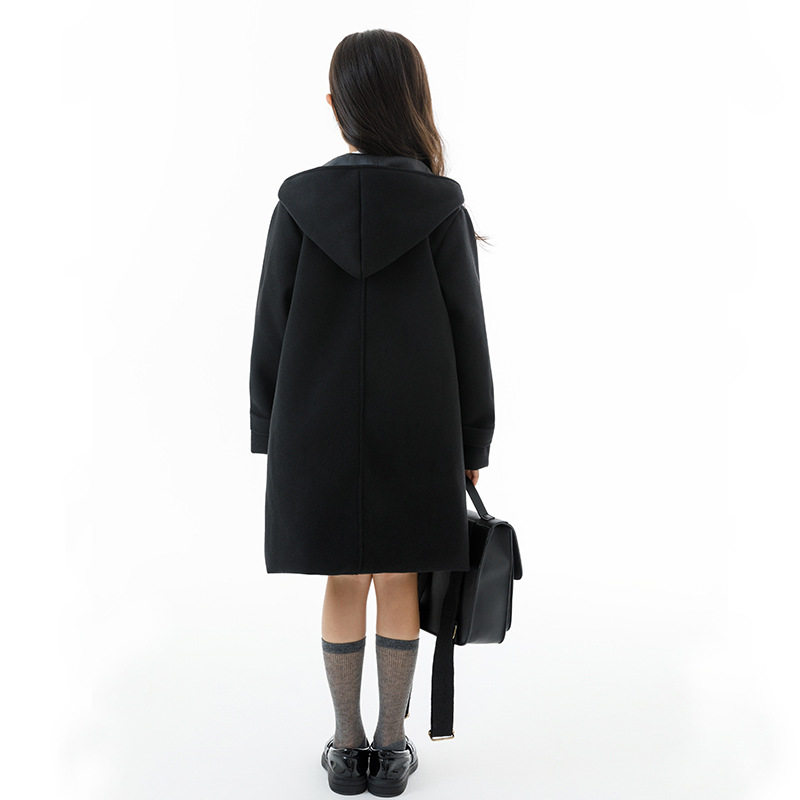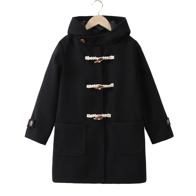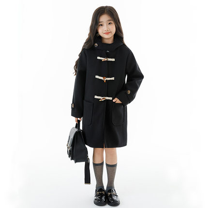 亲子童装男女童呢子开衫外套加厚加棉2025秋冬韩版牛角扣毛