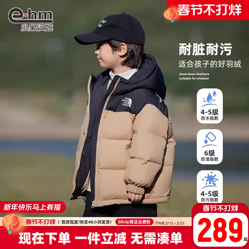 小象汉姆童装儿童羽绒服男童冬装三防面包服2026新款男孩保暖外套